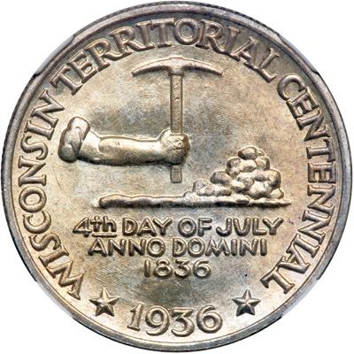 1936 Wisconsin Half Dollar. NGC graded MS-65. Nice golden toning. A gem with satiny luster (PCGS # 9447).