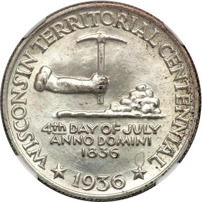 1936 Wisconsin Half Dollar. NGC graded MS-66. Light natural toning. The surfaces range from silvery to hard white frost underneath. A lustrous and nicely struck Gem (PCGS # 9447).