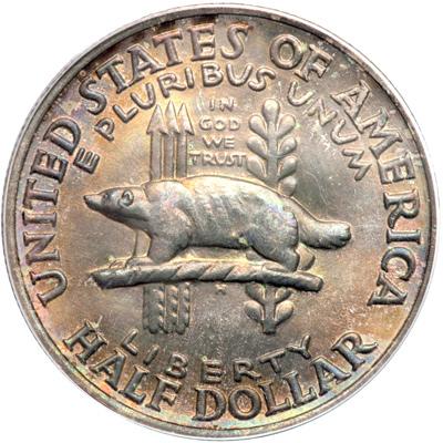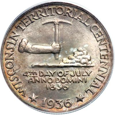 1936 Wisconsin Half Dollar. PCGS graded MS-65. Gorgeous original delicate multi-color toning on both sides. A lustrous beauty! (PCGS # 9447) .