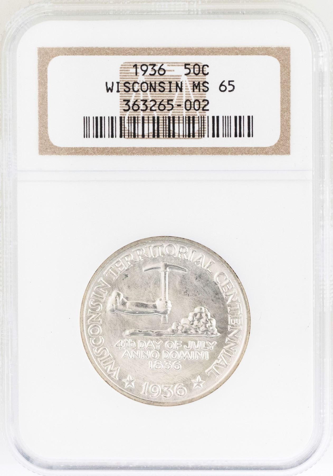One 1936 Wisconsin Territorial Centennial Commemorative Half Dollar Coin NGC MS65.