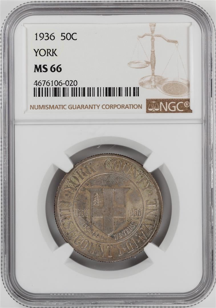 One 1936 York County Commemorative Half Dollar Coin NGC MS66. NGC Certified.