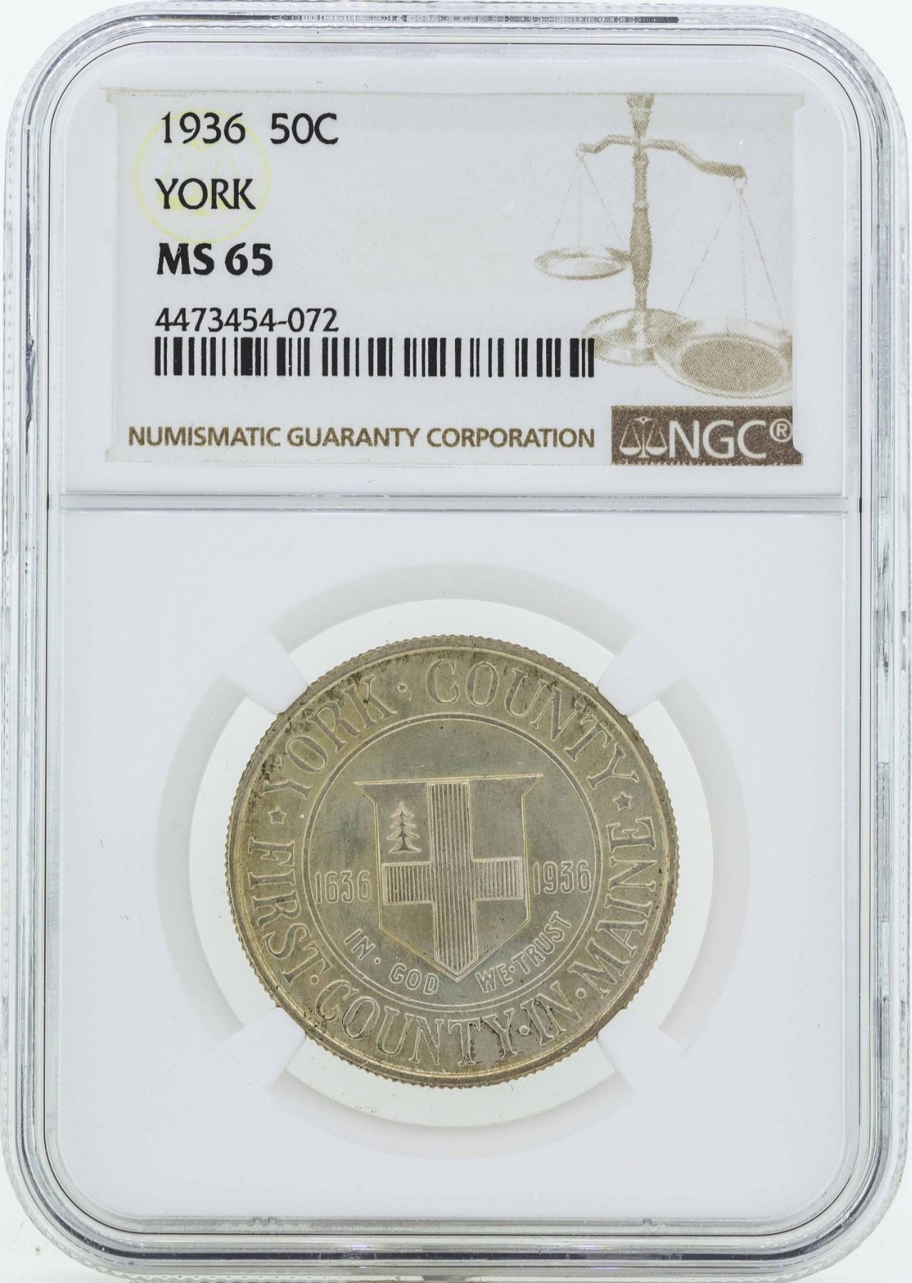 One 1936 York County, Maine Tercentenary Commemorative Half Dollar Coin NGC MS65.