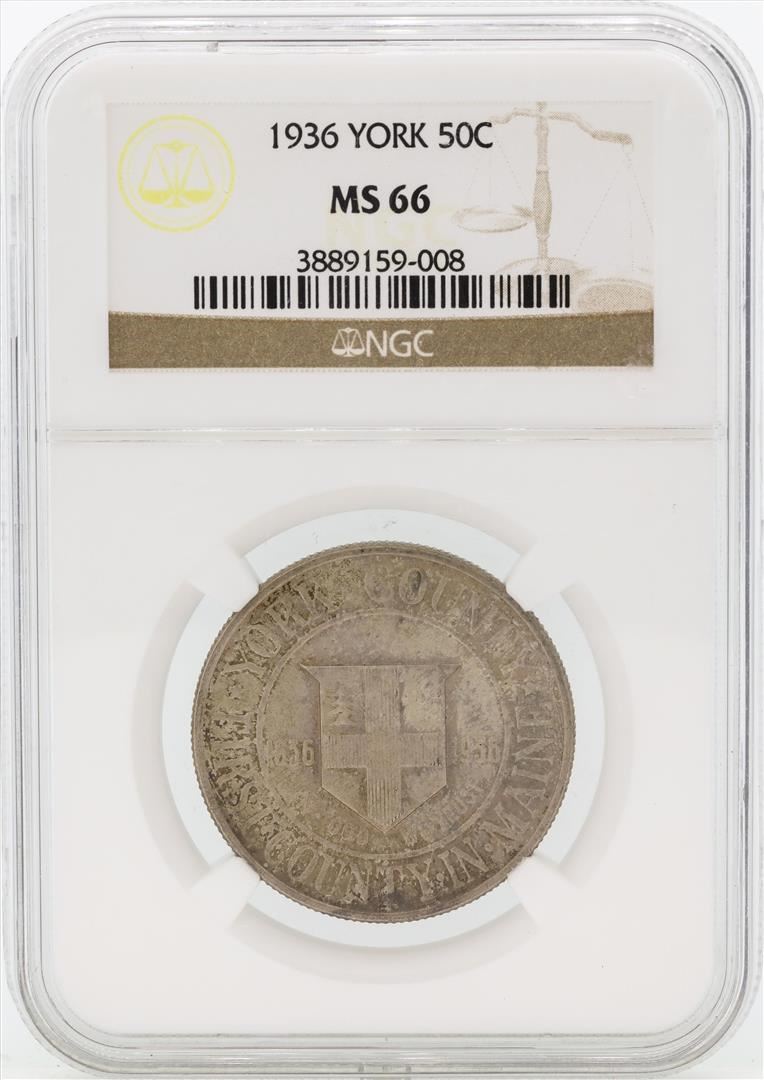 One 1936 York County, Maine Tercentenary Commemorative Half Dollar Coin NGC MS66. NGC Certified.