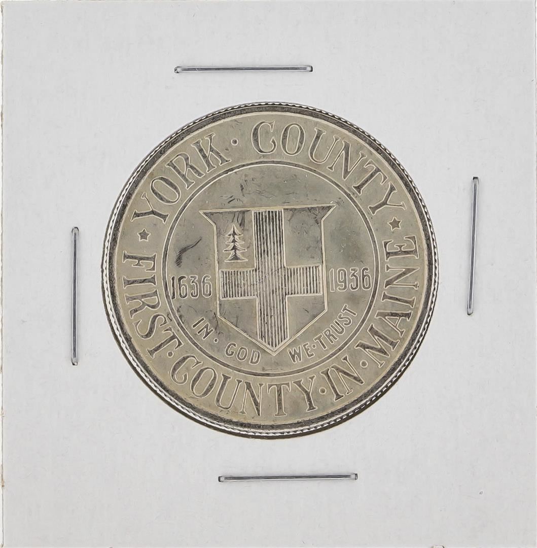One 1936 York County, Maine Tercentenary Commemorative Half Dollar Coin.