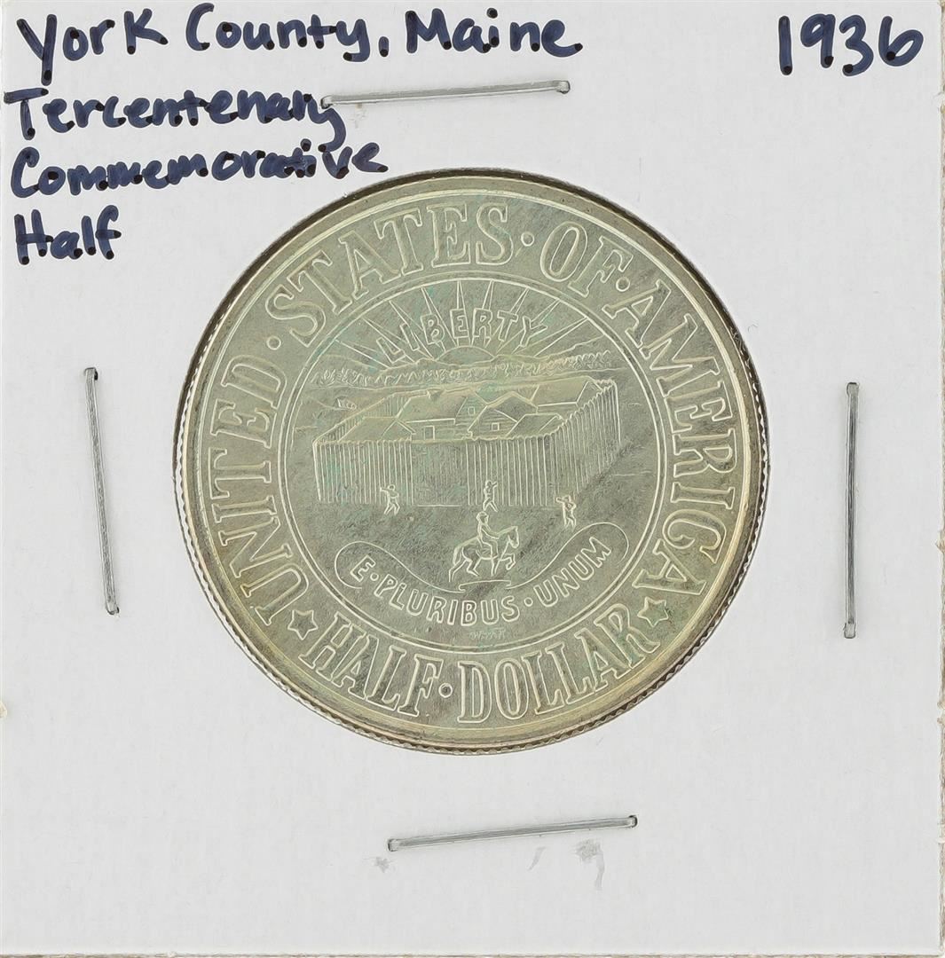 One 1936 York County, Maine Tercentenary Commemorative Half Dollar Coin.
