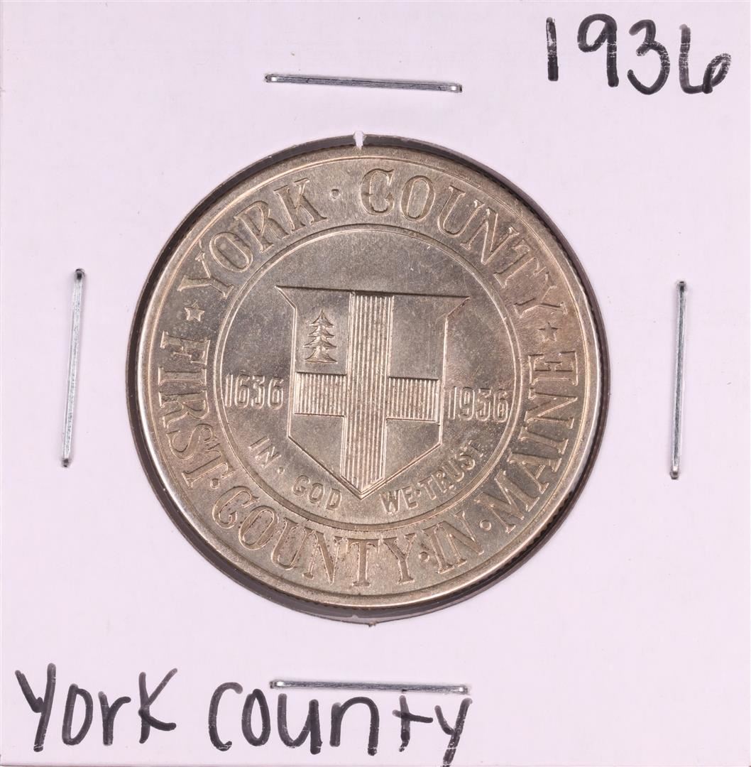 One 1936 York County, Maine Tercentenary Commemorative Half Dollar Coin.