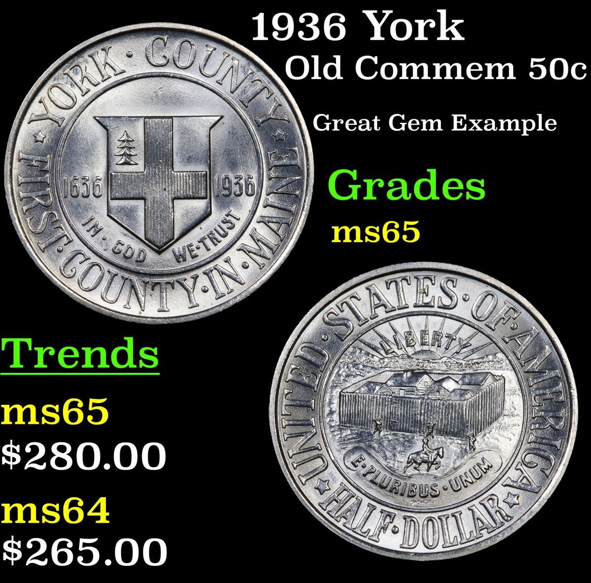 1936 York Old Commem Half Dollar 50c Grades GEM Unc.