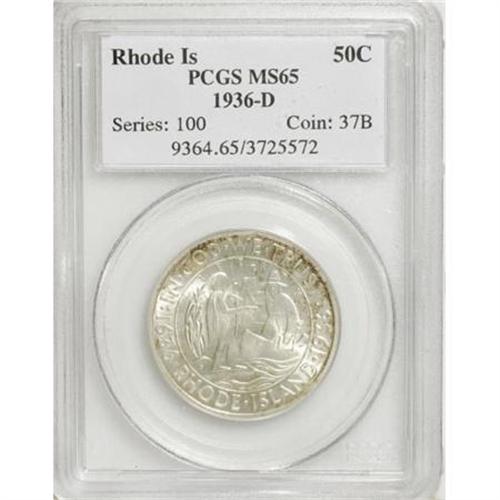 <B>1936 50C Rhode Island MS65 PCGS,</B></I> light russet and olive toning, a small arc of translucent residue from 12 to 1 o'clock;<B> 1936-D Rhode Island MS65 PCGS, </B></I>a beautiful Gem with gently freckled lime patina, a small strike-through near HOPE; and a<B> 1936 York MS65 PCGS, </B></I>pleasing and satiny with delicate caramel-gold shadings.<BR><BR><b>Shipping:</b> Coins & Currency (<a target="_blank" href="http://www.heritageauctions.com/common/shipping.php">view shipping information</a>)