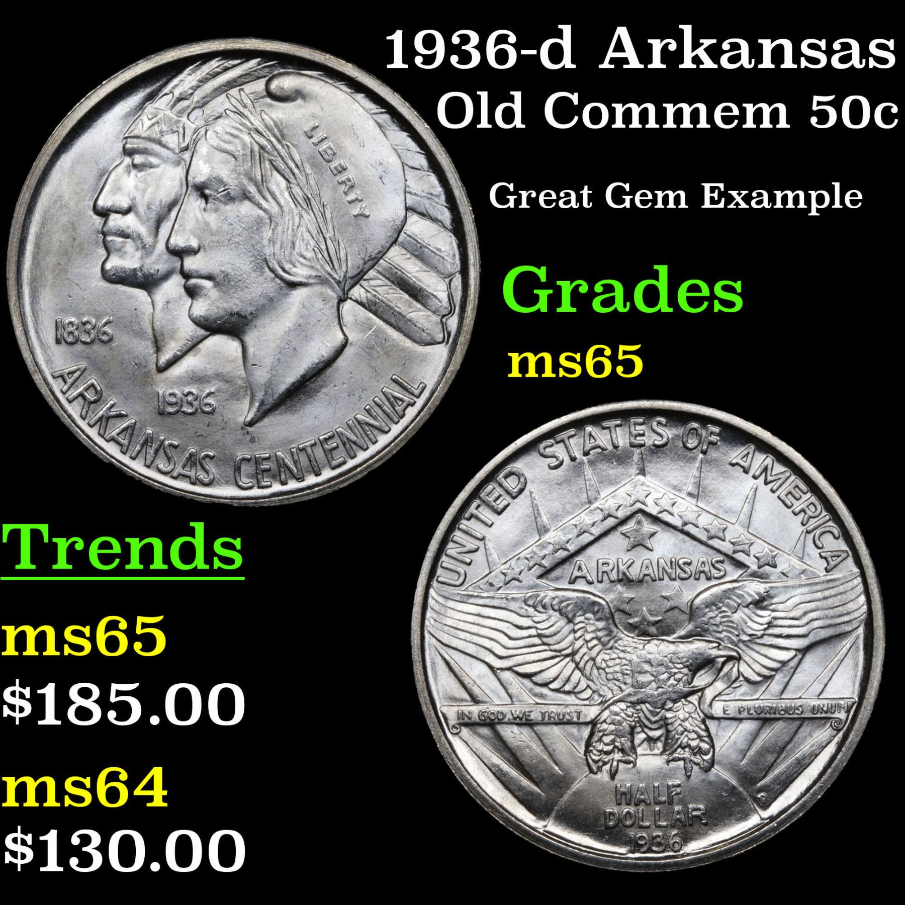 1936-d Arkansas Old Commem Half Dollar 50c Grades GEM Unc.