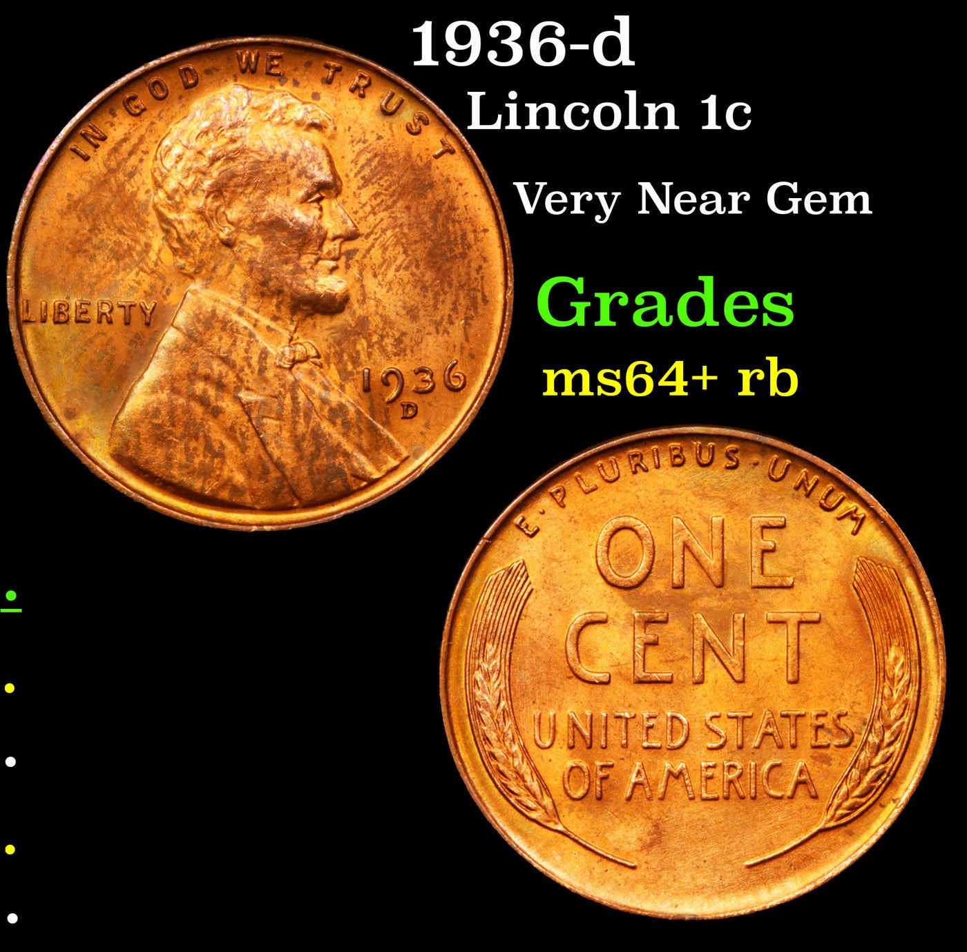 1936-d Lincoln Cent 1c Grades Choice+ Unc RB.