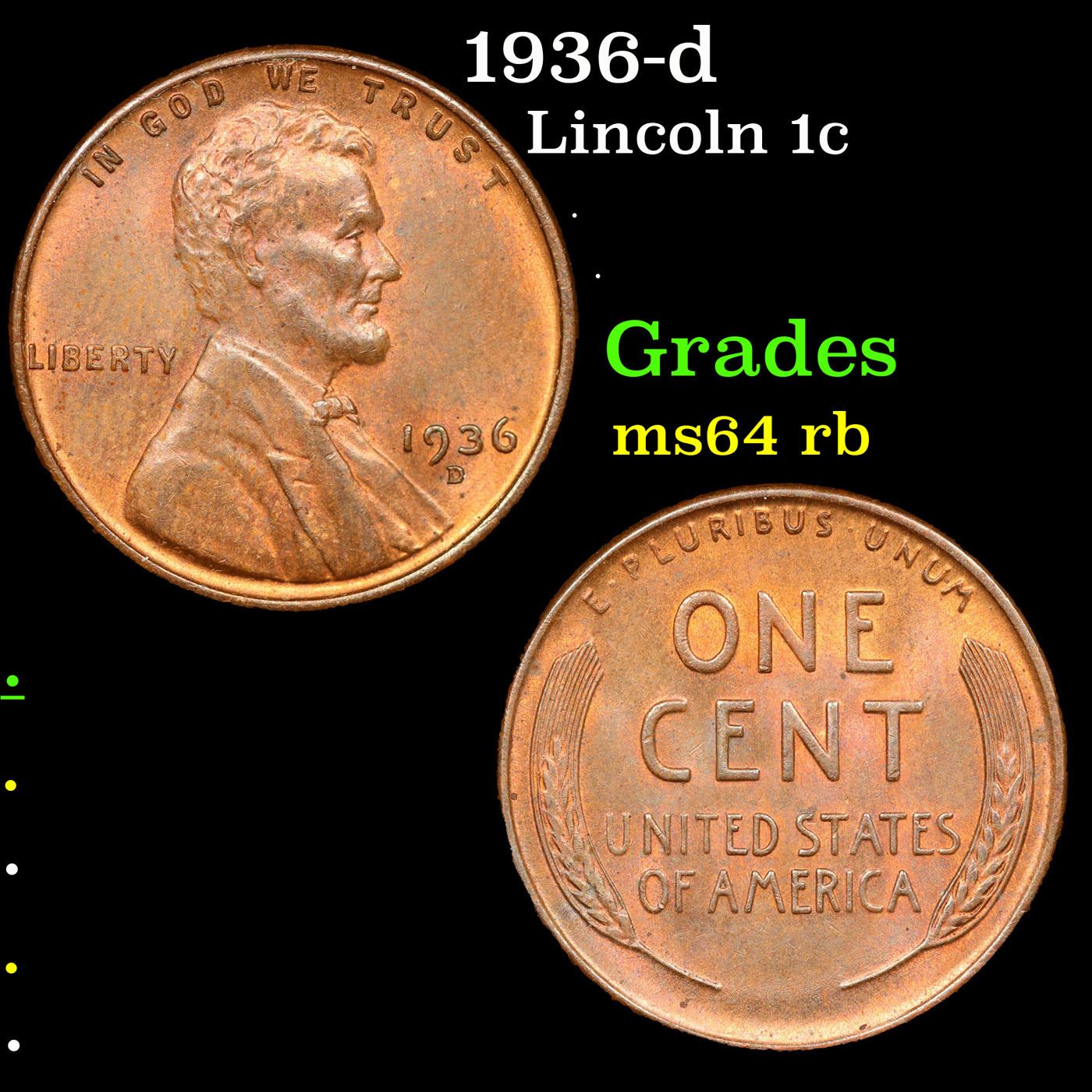 1936-d Lincoln Cent 1c Grades Choice Unc RB.