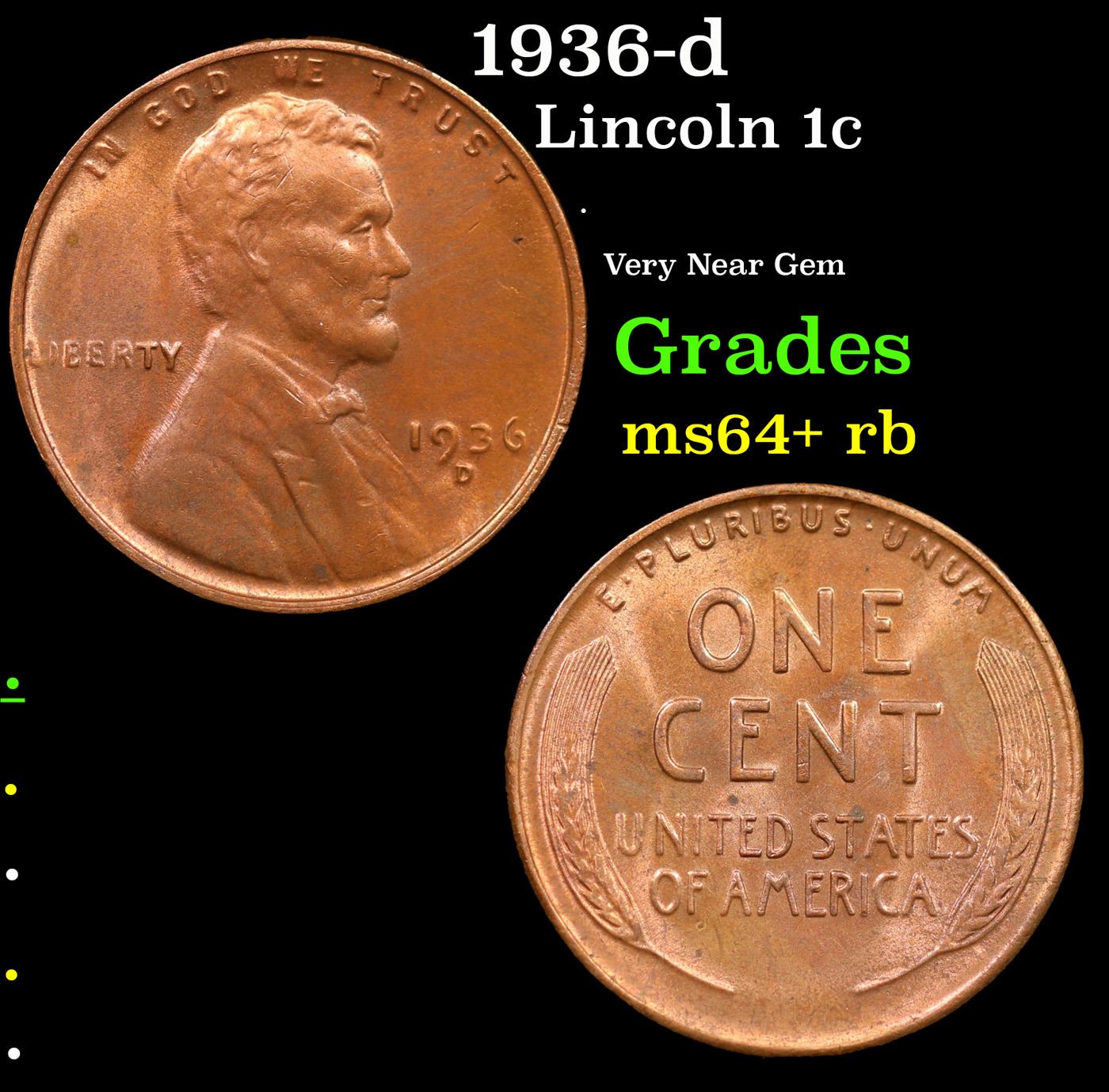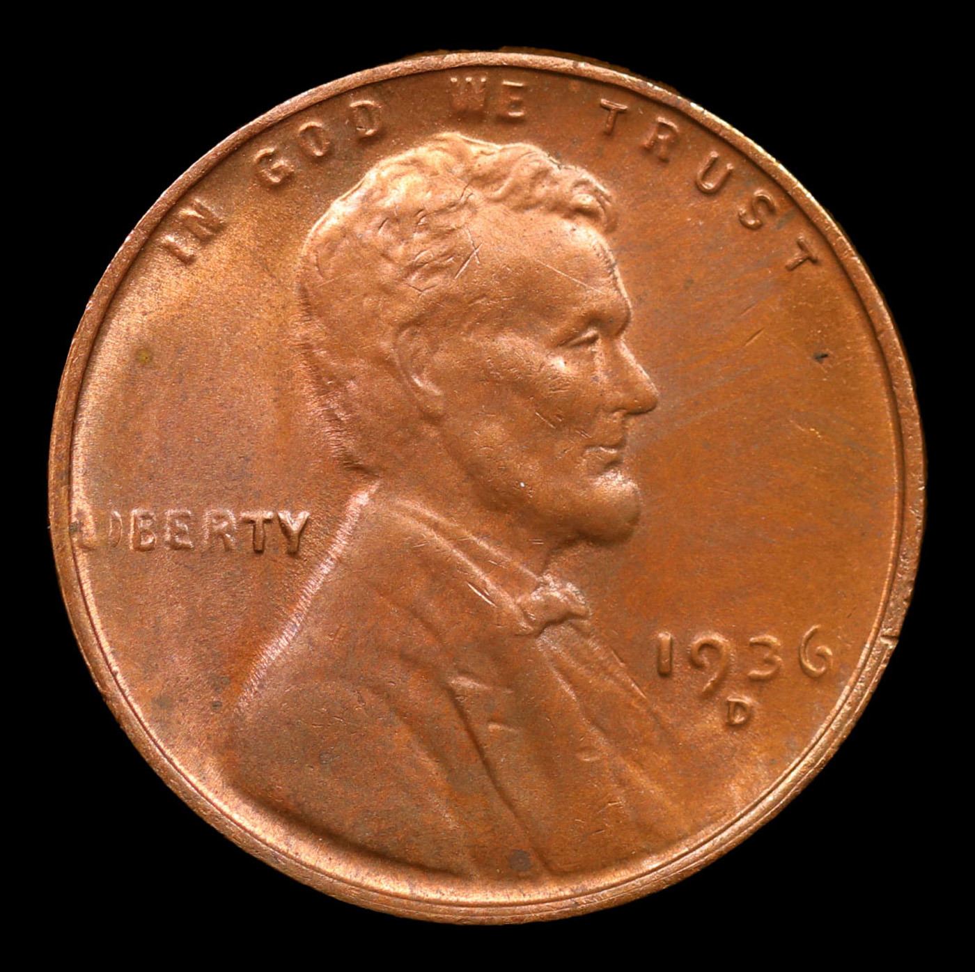 1936-d Lincoln Cent 1c Grades Choice+ Unc RB.