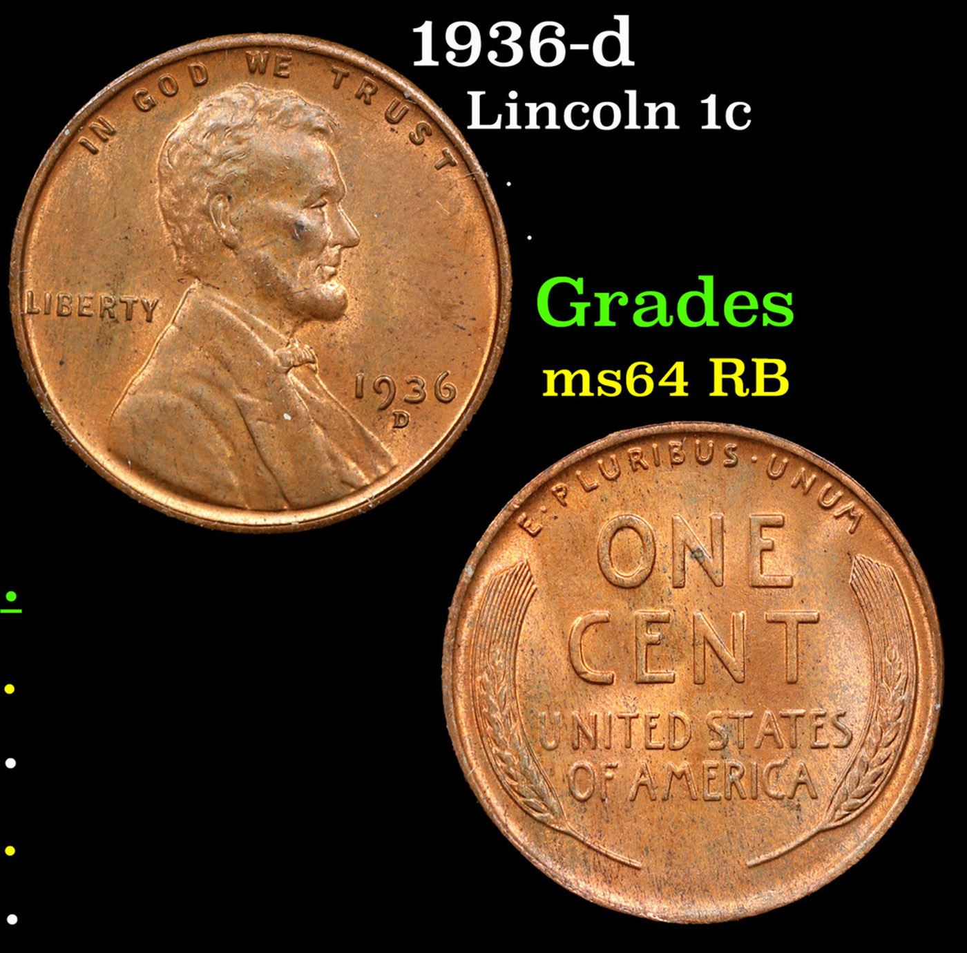 1936-d Lincoln Cent 1c Grades Choice Unc RB.
