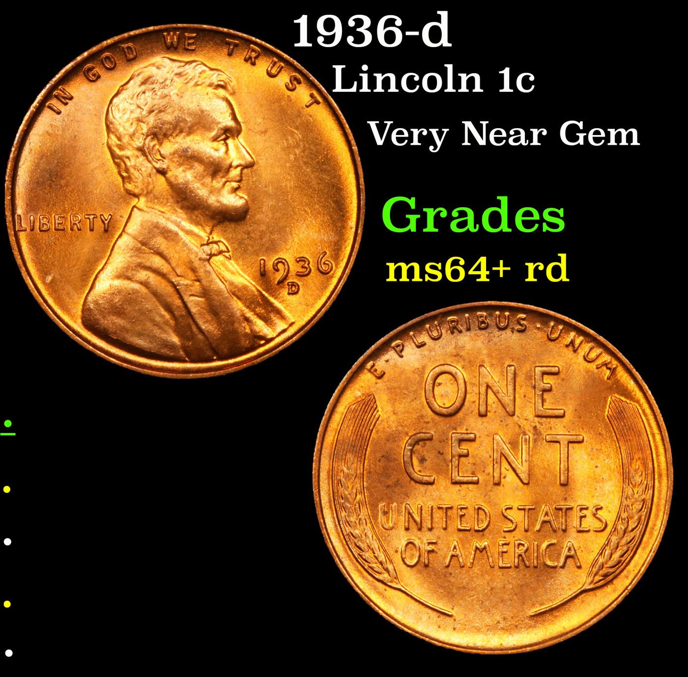 1936-d Lincoln Cent 1c Grades Choice+ Unc RD.
