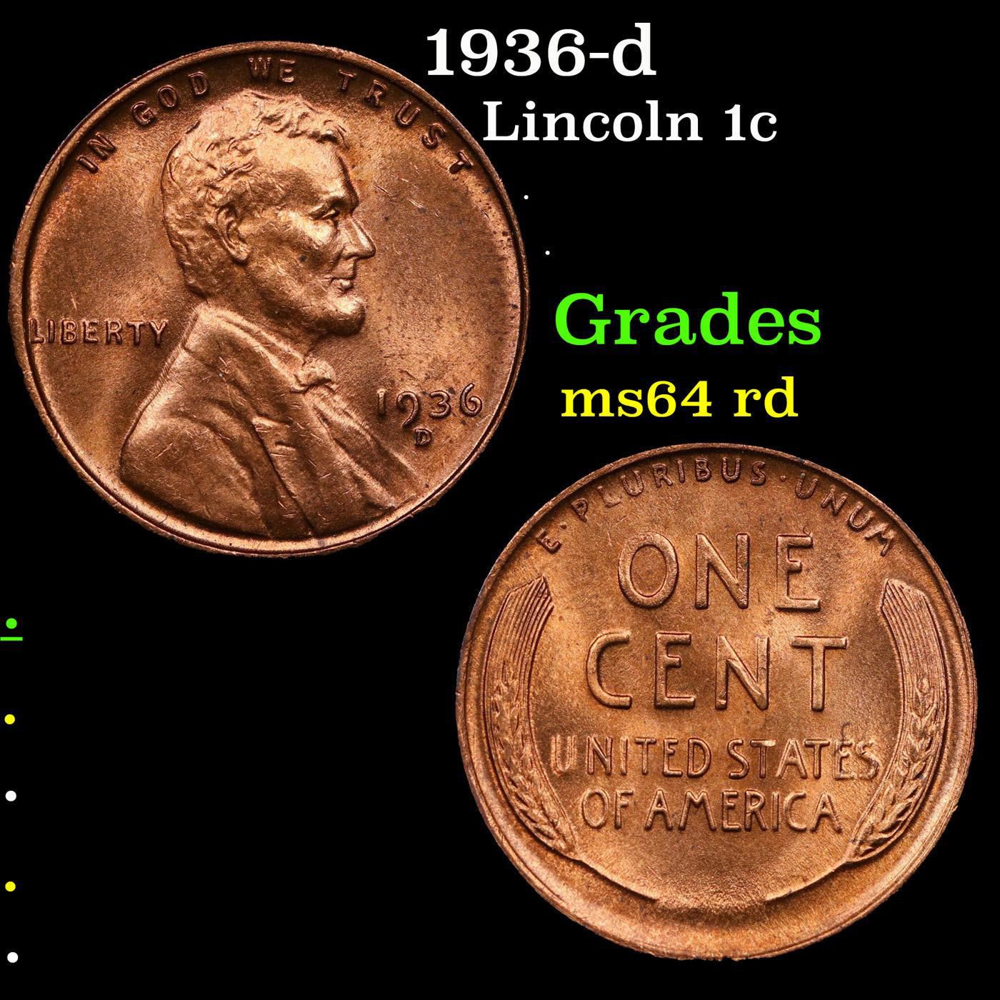 1936-d Lincoln Cent 1c Grades Choice Unc RD.