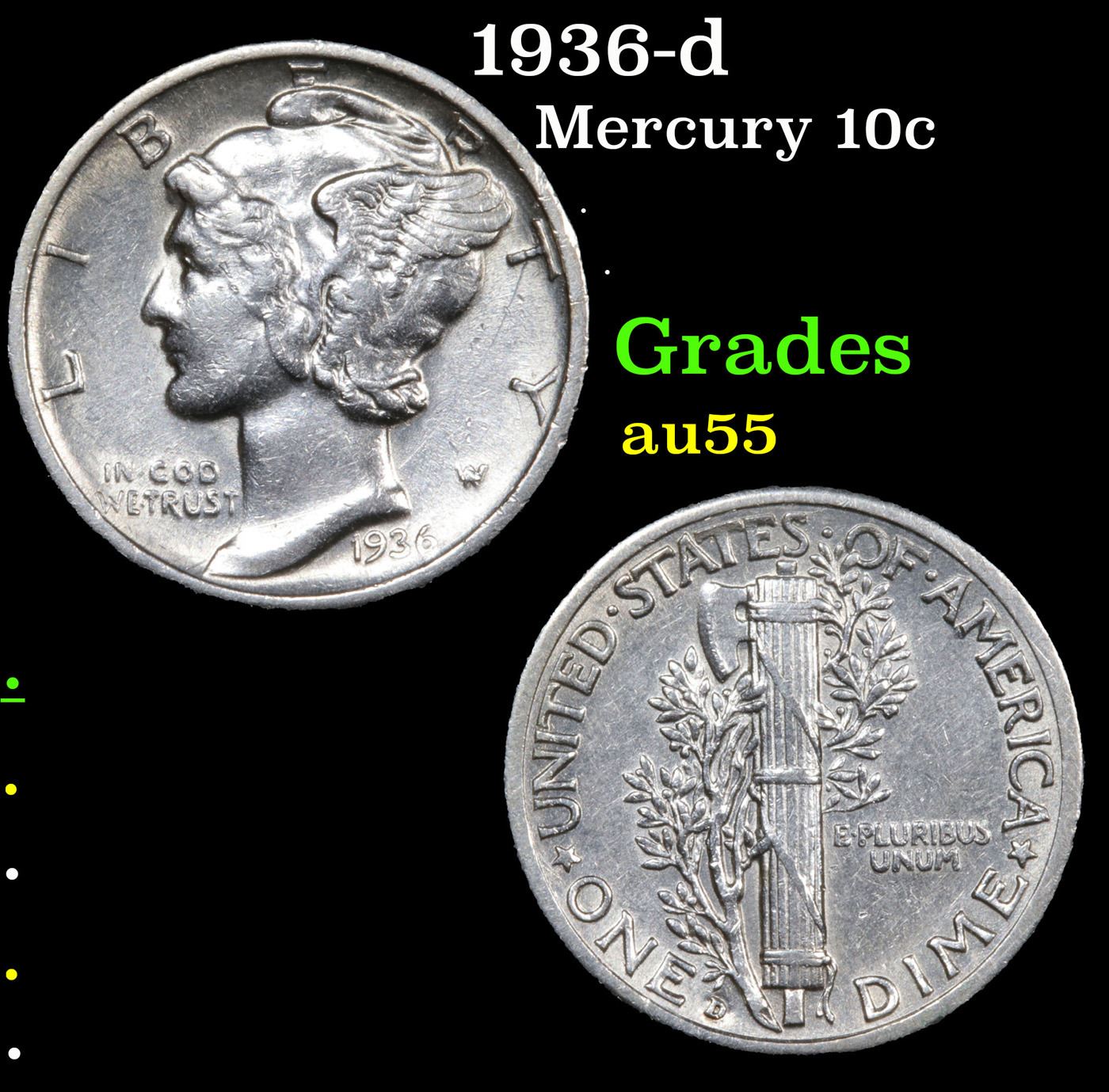 1936-d Mercury Dime 10c Grades Choice AU.
