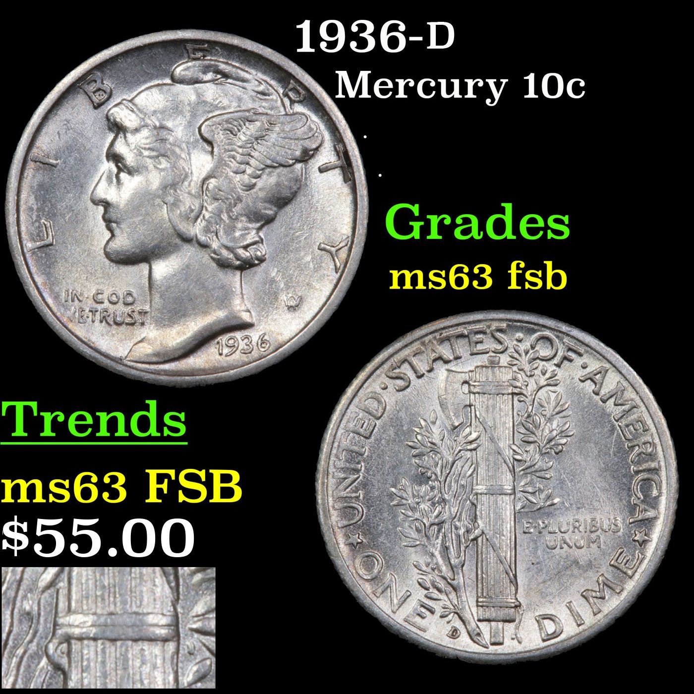 1936-d Mercury Dime 10c Grades Select Unc FSB.