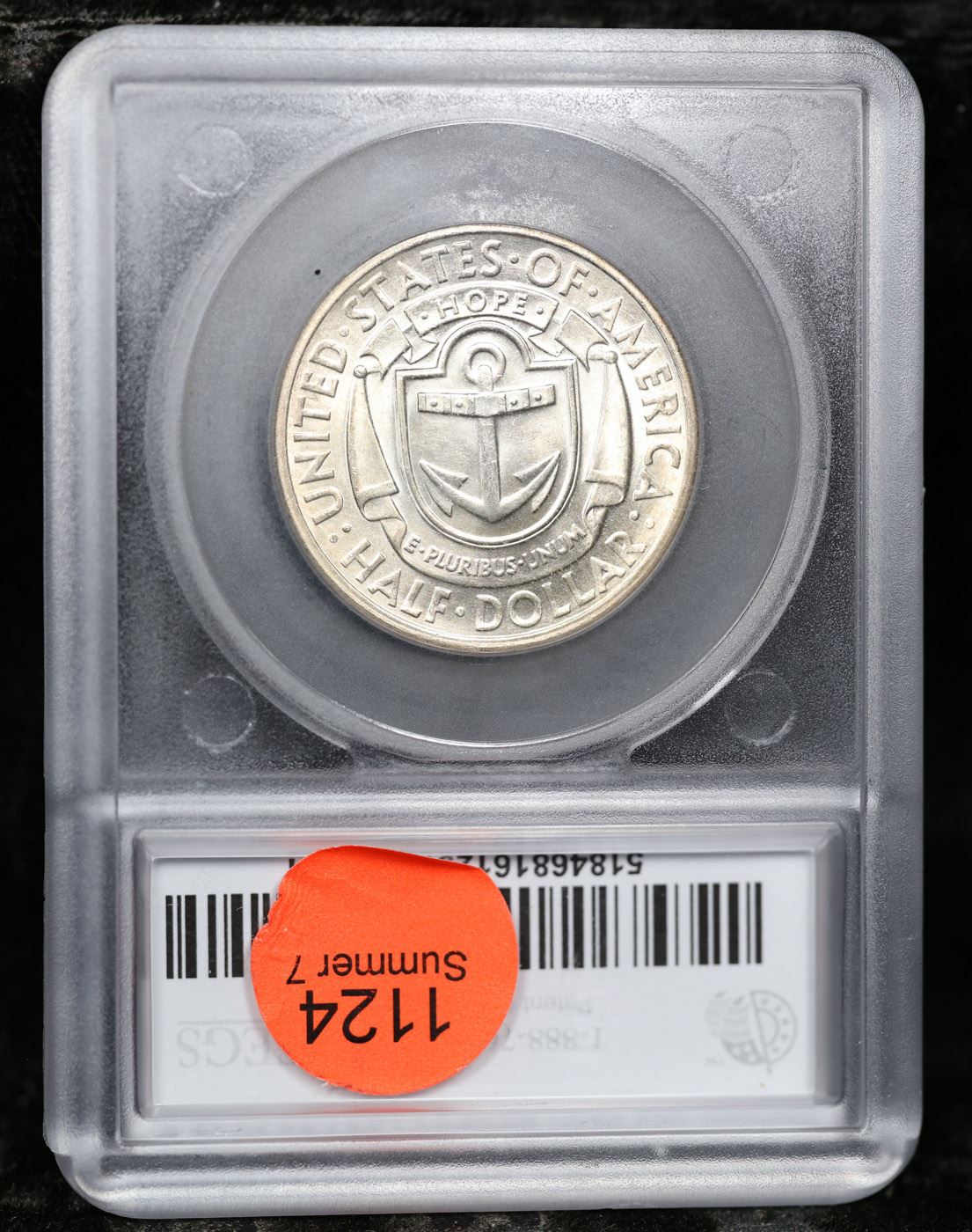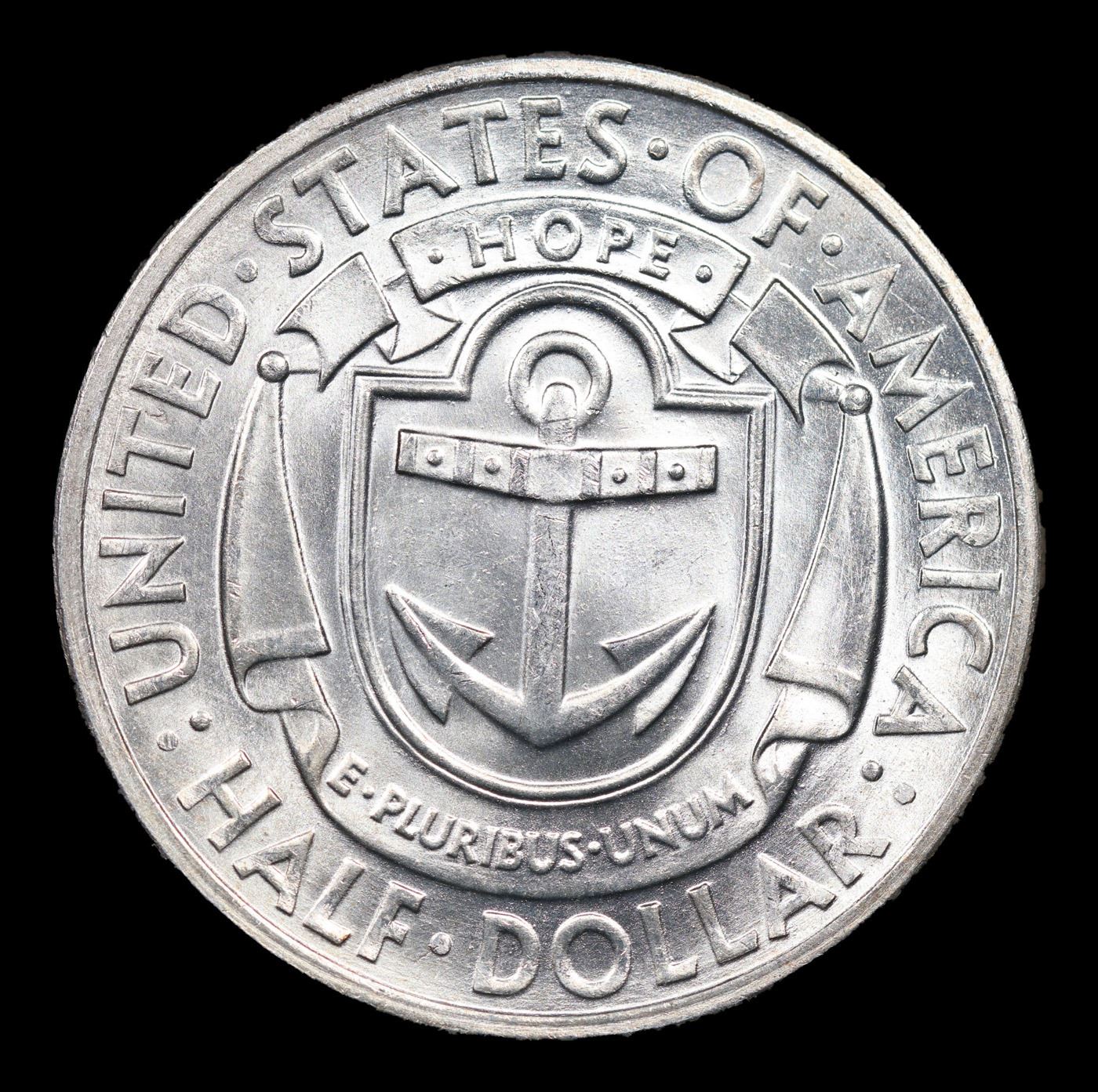 1936-d Rhode Island Old Commem Half Dollar 50c Graded ms64+ BY SEGS. The commemorative coin most commonly referred to as the 1936 Rhode Island Tercentenary Half Dollar (Buy on eBay) was actually issued to mark the 300th anniversary of the founding of Providence by Roger Williams. The maximum authorized mintage was 50,000 pieces, of which the entire amount was produced across three mint facilities and distributed to the public.Designs for the coins were created by John Howard Benson and Arthur Graham Carey. Their original models did include reference to the Providence with inscriptions around the outer edge of the coin on the obverse “In a scene of God’s Merciful providence until me, called the place Providence” and on the reverse “State of Rhode Island and Providence Plantation Tercentenary”. These lengthy inscriptions were not used in the final version of the design.The obverse features a scene of John Williams in a canoe, holding a bible, and greeting a Native American who stands on the shore extending a hand. The “sun of religious liberty” appears in the background. The reverse design features an anchor and shield motif, adopted from the Rhode Island state seal. These designs were struck in low relief, but with sharply designed elements that resemble a woodcut.Including pieces struck for assay, the Philadelphia Mint produced 20,013, the Denver Mint 15,010, and the San Francisco Mint 15,011. The Rhode Island Half Dollars were issued for $1 each and said to have sold out quickly, however it was later suspected that some insiders held back portions of their allotments in order to sell them to the public at higher prices after the so-called sell out.Due to the nature of the design, contact marks may be prominent on the obverse and reverse. A small number of the coins are found with proof like surfaces, and these pieces command a premium.