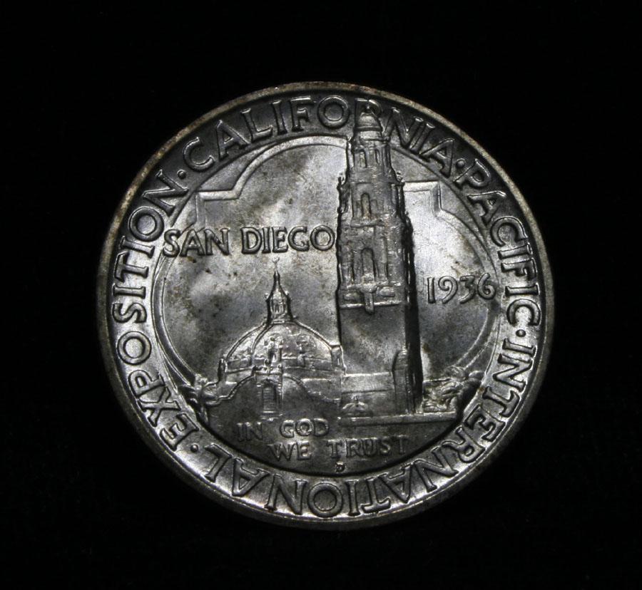 Note the 1936-d is 2x as scarce as the more common 1935-s issue. the 35-s has a mintage of 70k and this issue has a mintage of 30k. A beautiful and lustrous example of a scarce and beautiful coin. One of the most beautiful coins ever minted in the US This example is virtually mark free and has exceptional luster and eye appeal. When looking at a San Diego half look for the first signs of wear on Minerva’s knees and on the upper-right portion of the tower. Coin World's Coin Values lists ms66 at $350 and The Wholesale Greysheet lists ms66 at $200. Estimated Value $275