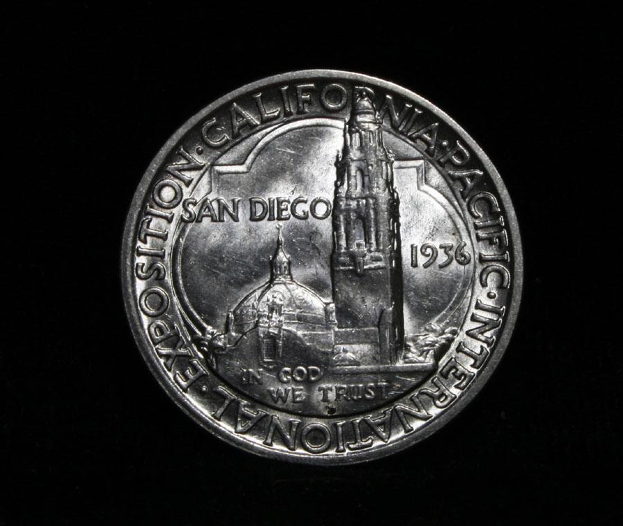 Note the 1936-d is 2x as scarce as the more common 1935-s issue. the 35-s has a mintage of 70k and this issue has a mintage of 30k. A beautiful and lustrous example of a scarce and beautiful coin. One of the most beautiful coins ever minted in the US This example is virtually mark free and has exceptional luster and eye appeal. When looking at a San Diego half look for the first signs of wear on Minerva’s knees and on the upper-right portion of the tower. Coin World's Coin Values lists ms66 at $350 and The Wholesale Greysheet lists ms66 at $200. Estimated Value $275