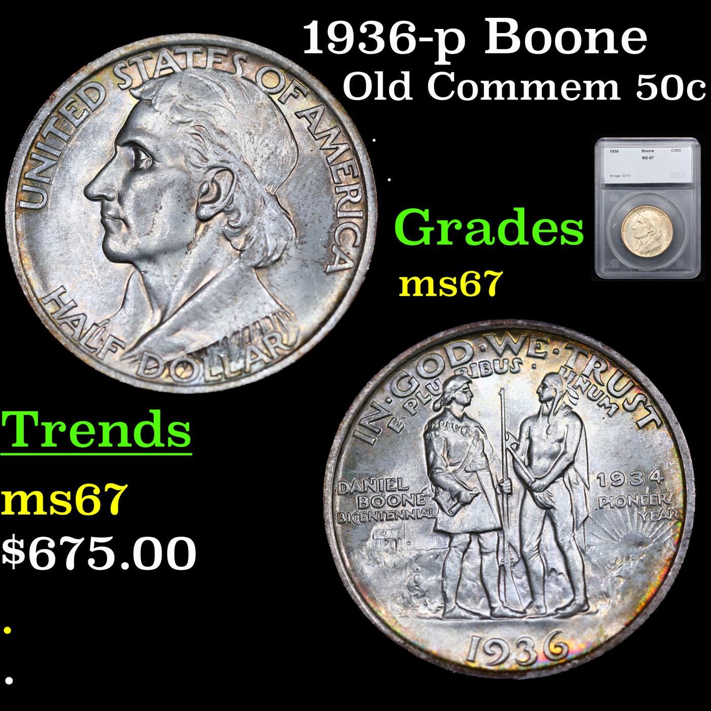 1936-p Boone Old Commem Half Dollar 50c Graded ms67 By SEGS.