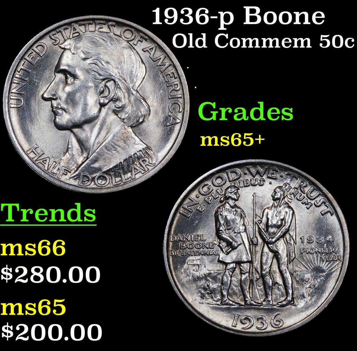1936-p Boone Old Commem Half Dollar 50c Grades GEM+ Unc.