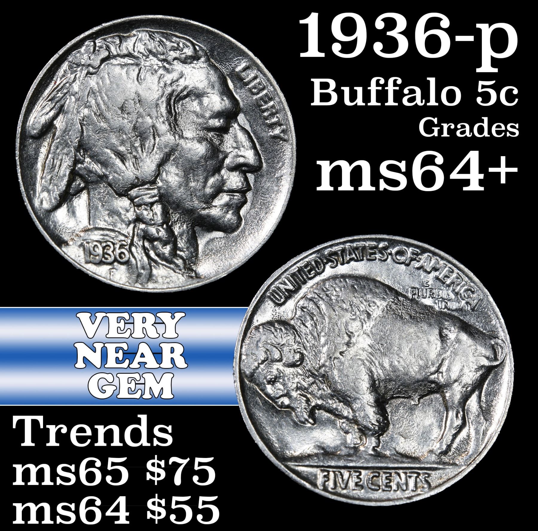 1936-p Buffalo Nickel 5c Grades Choice+ Unc.