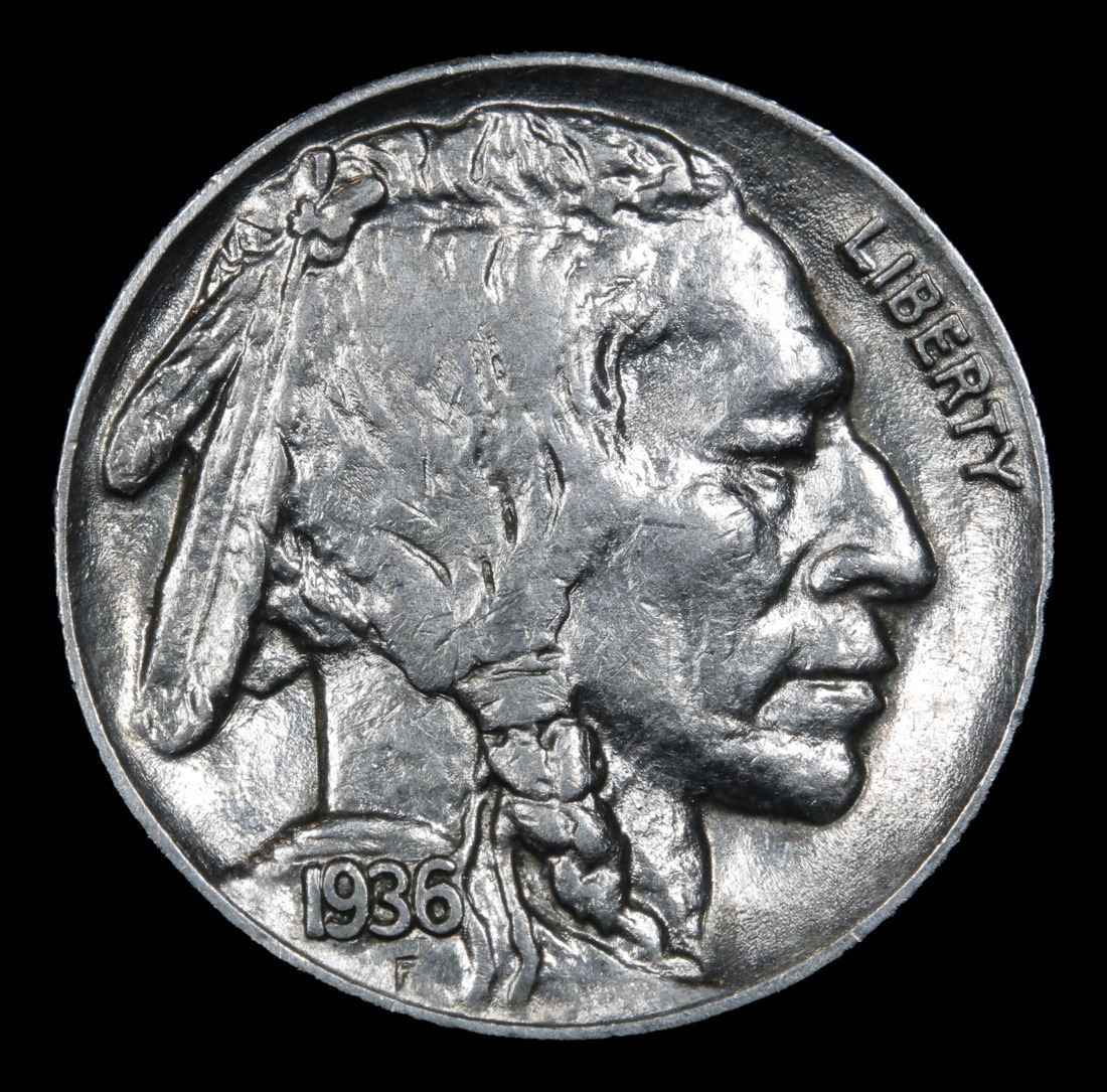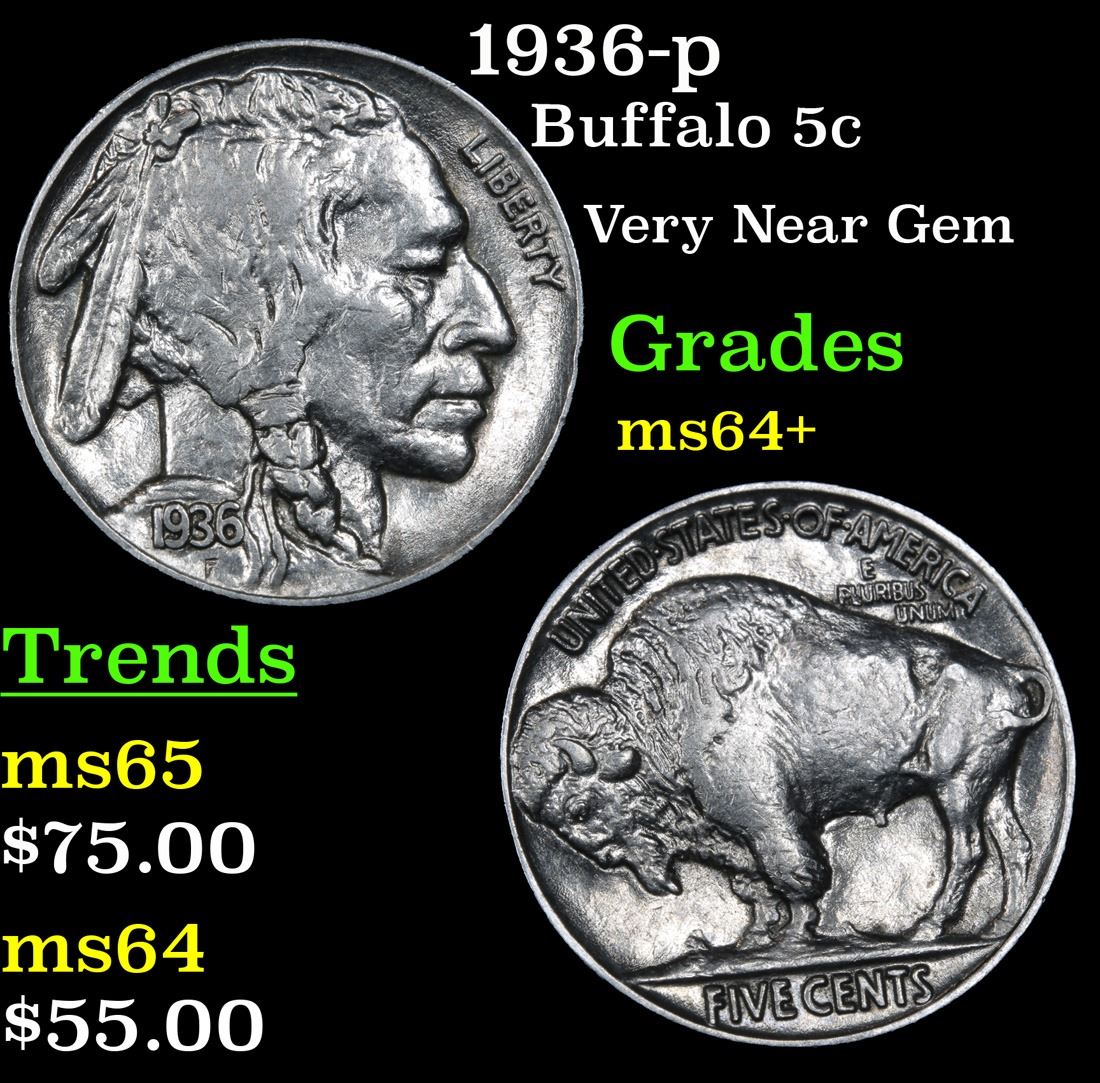 1936-p . Very Near Gem Buffalo Nickel 5c Grades Choice+ Unc.