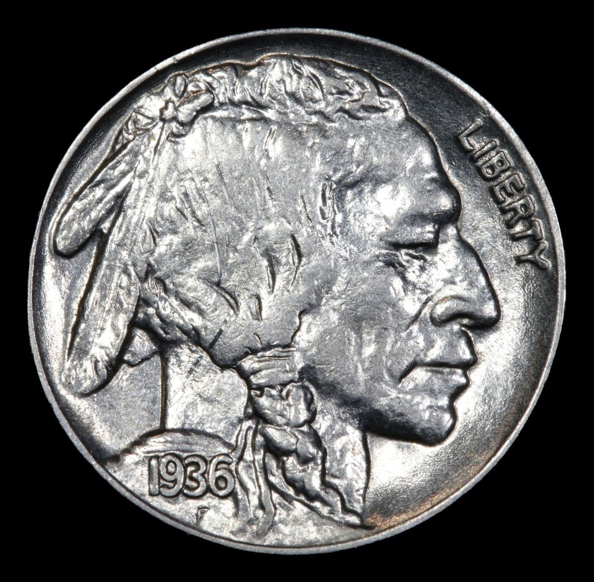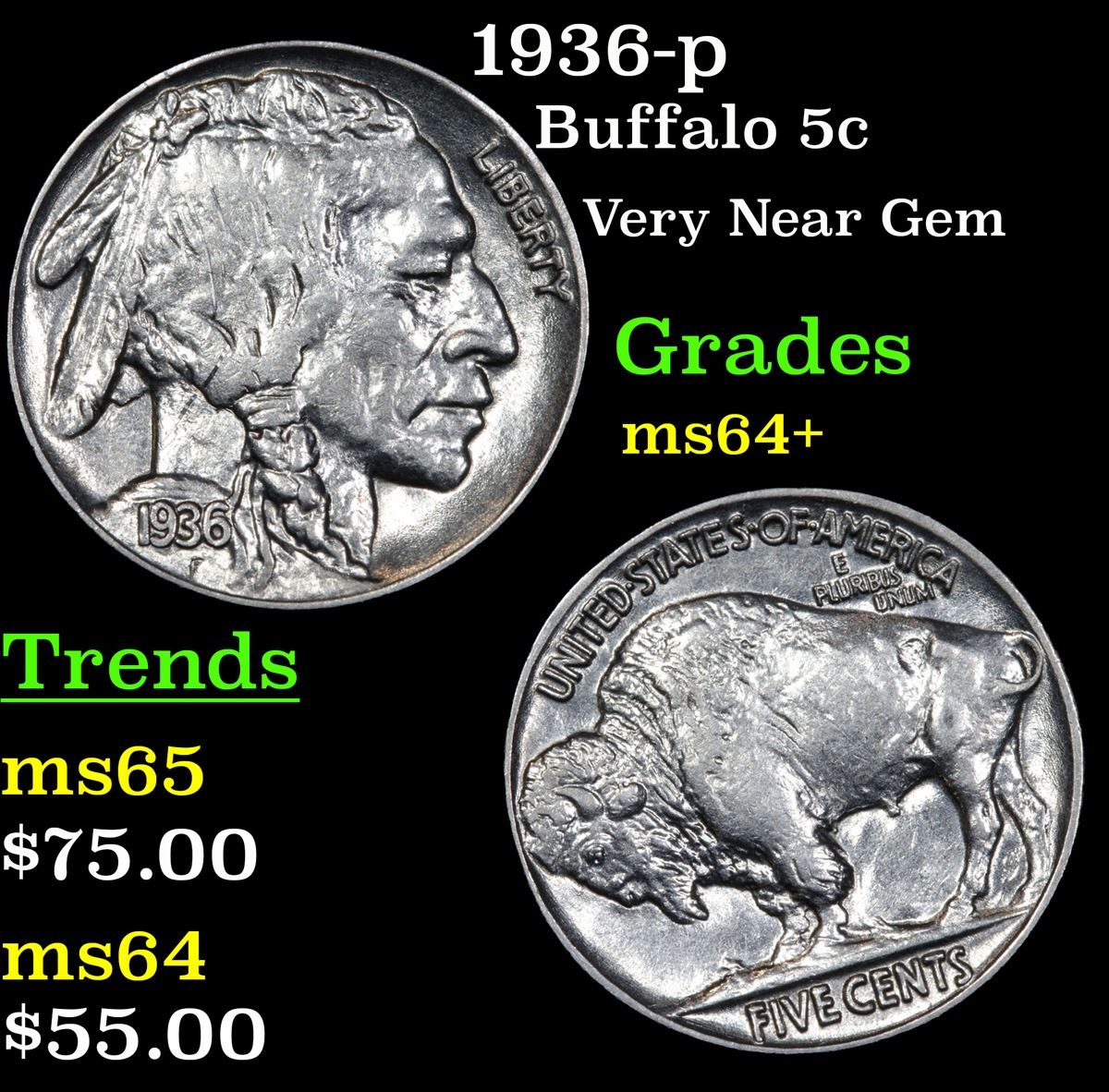 1936-p . Very Near Gem Buffalo Nickel 5c Grades Choice+ Unc.