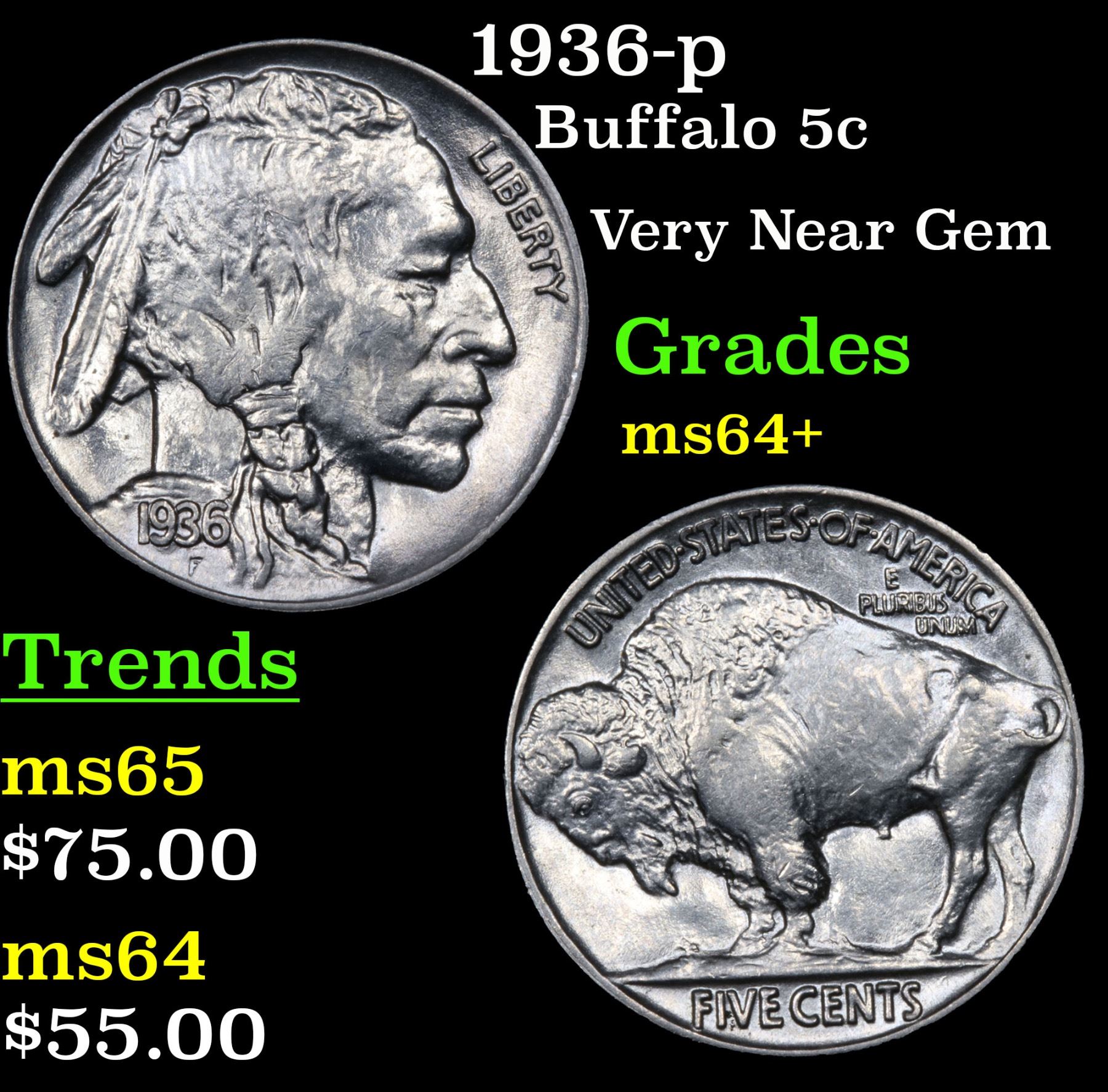 1936-p Buffalo Nickel 5c Grades Choice+ Unc.