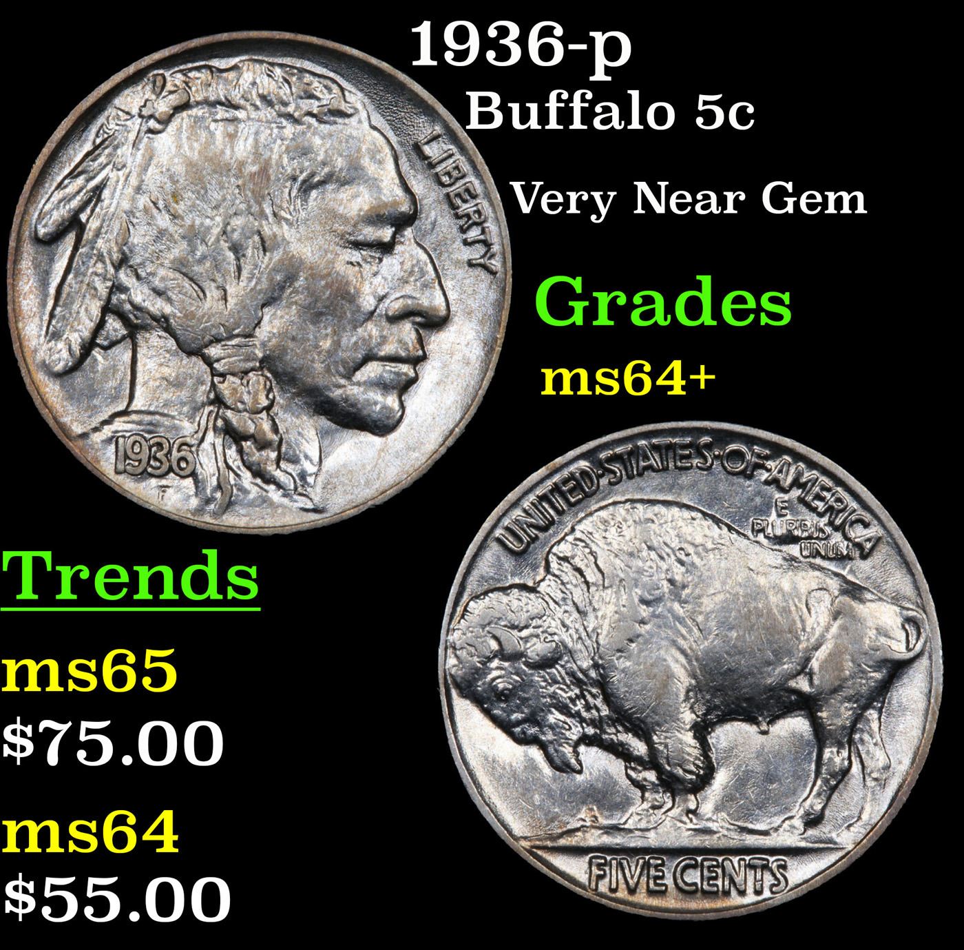 1936-p Buffalo Nickel 5c Grades Choice+ Unc.