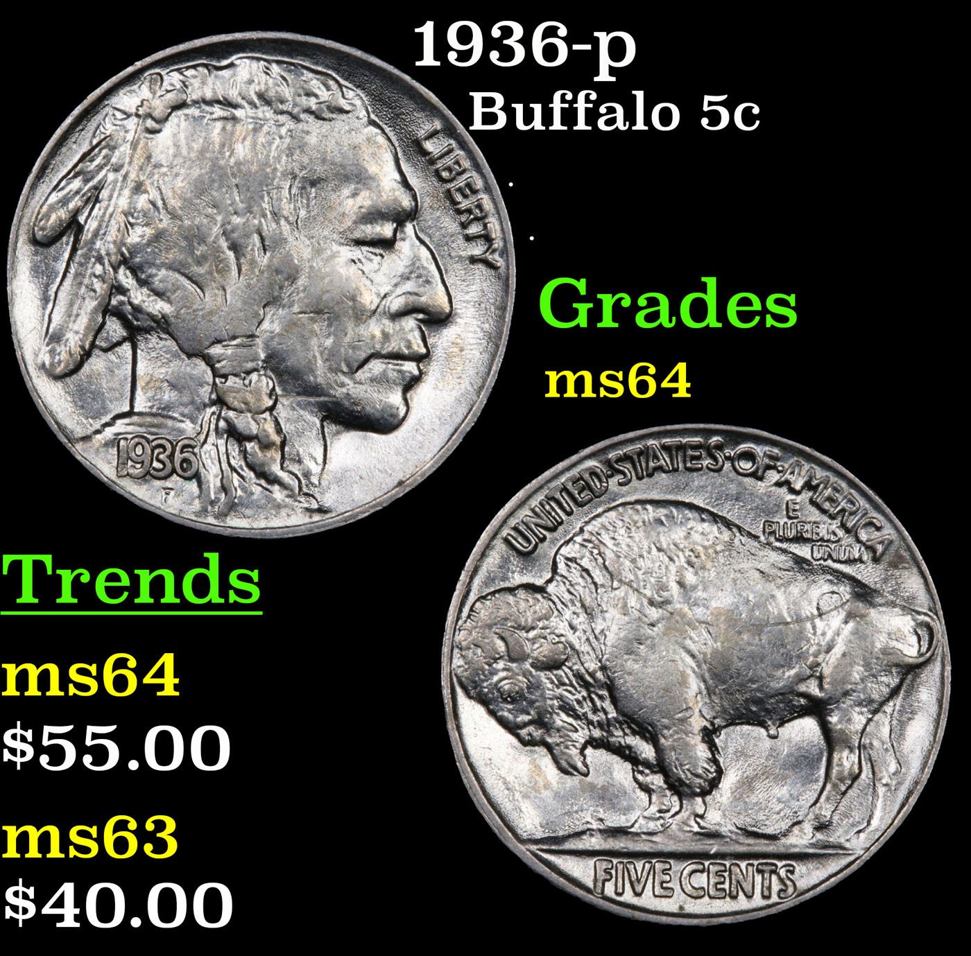1936-p Buffalo Nickel 5c Grades Choice Unc.