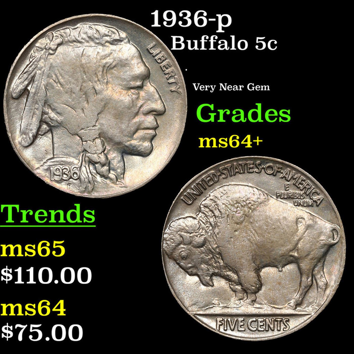 1936-p Buffalo Nickel 5c Grades Choice+ Unc.