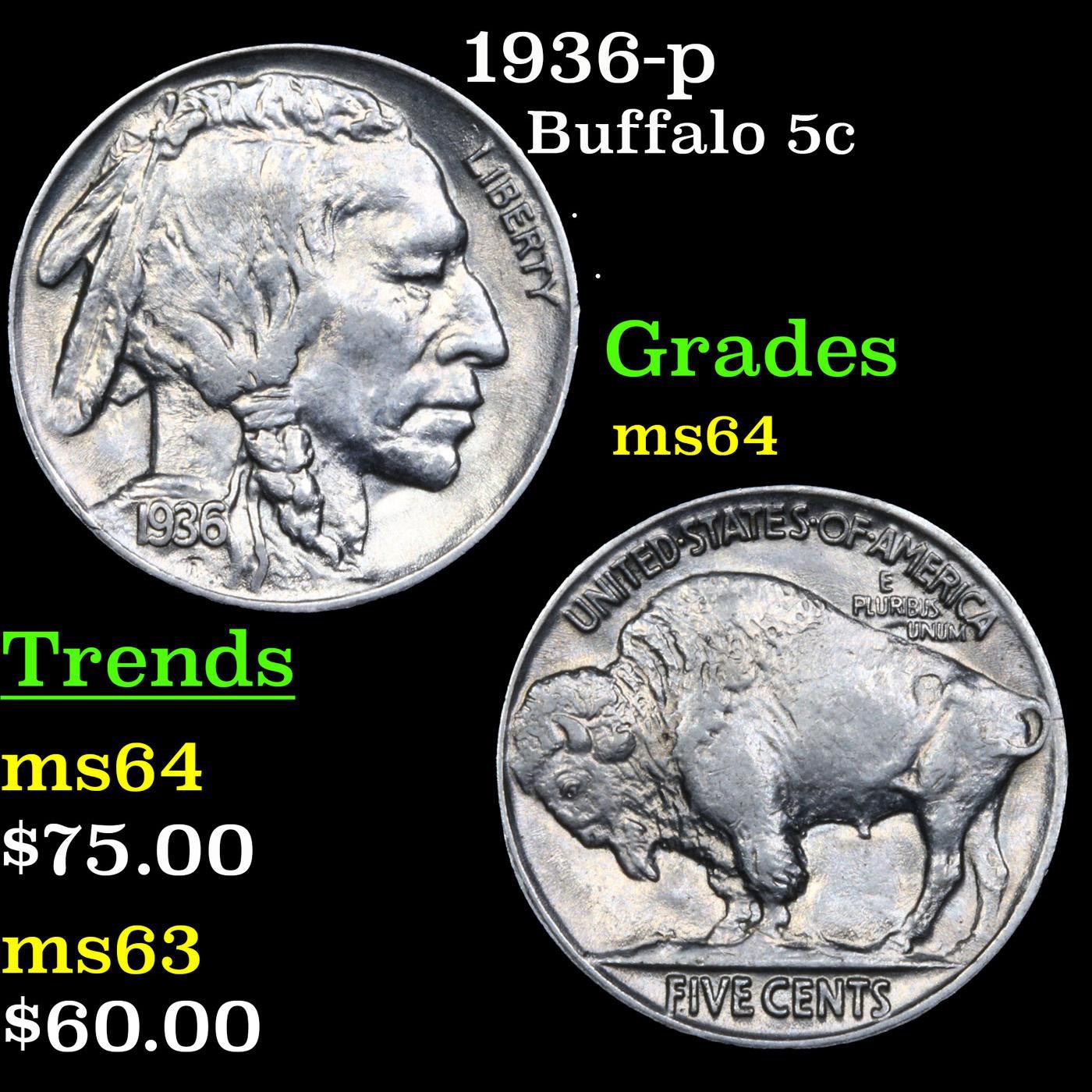 1936-p Buffalo Nickel 5c Grades Choice Unc.