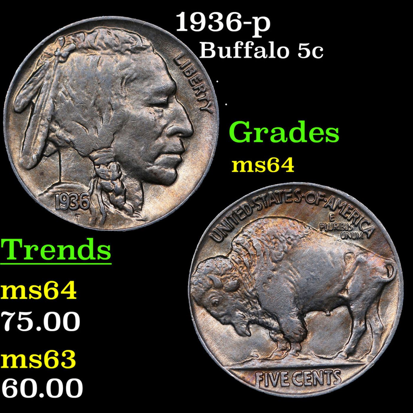 1936-p Buffalo Nickel 5c Grades Choice Unc.