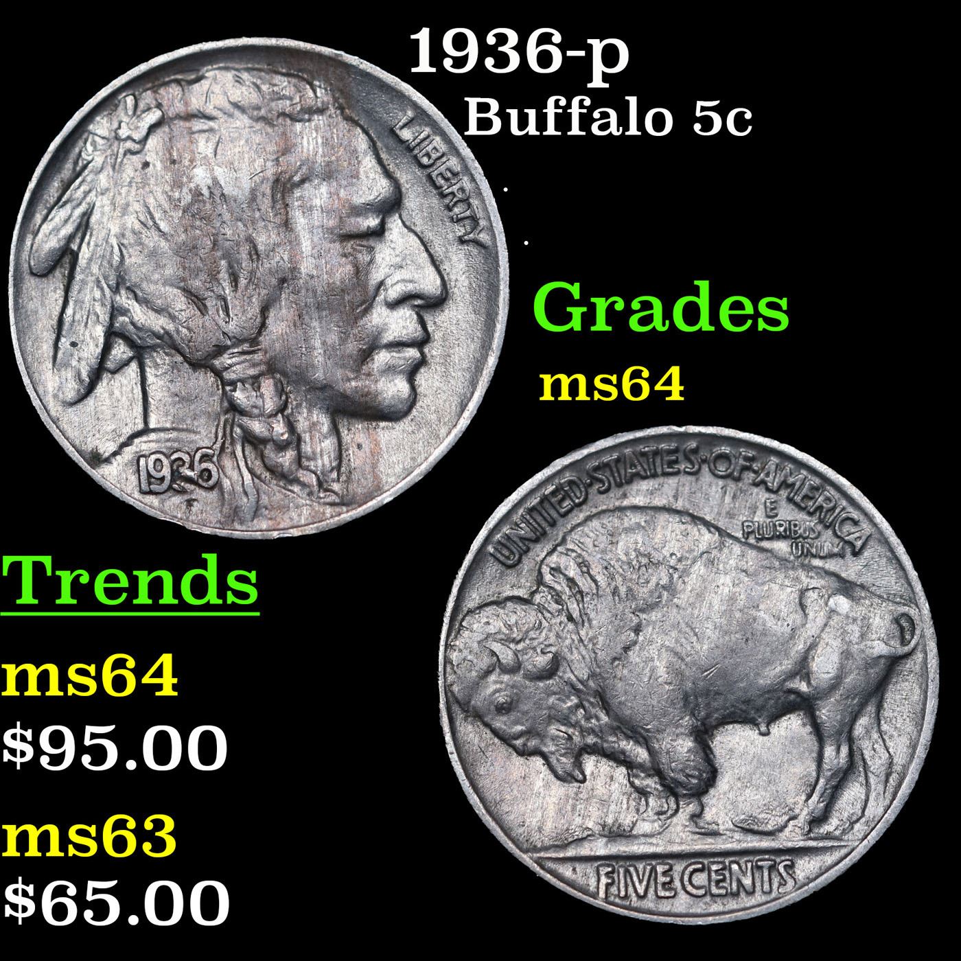 1936-p Buffalo Nickel 5c Grades Choice Unc