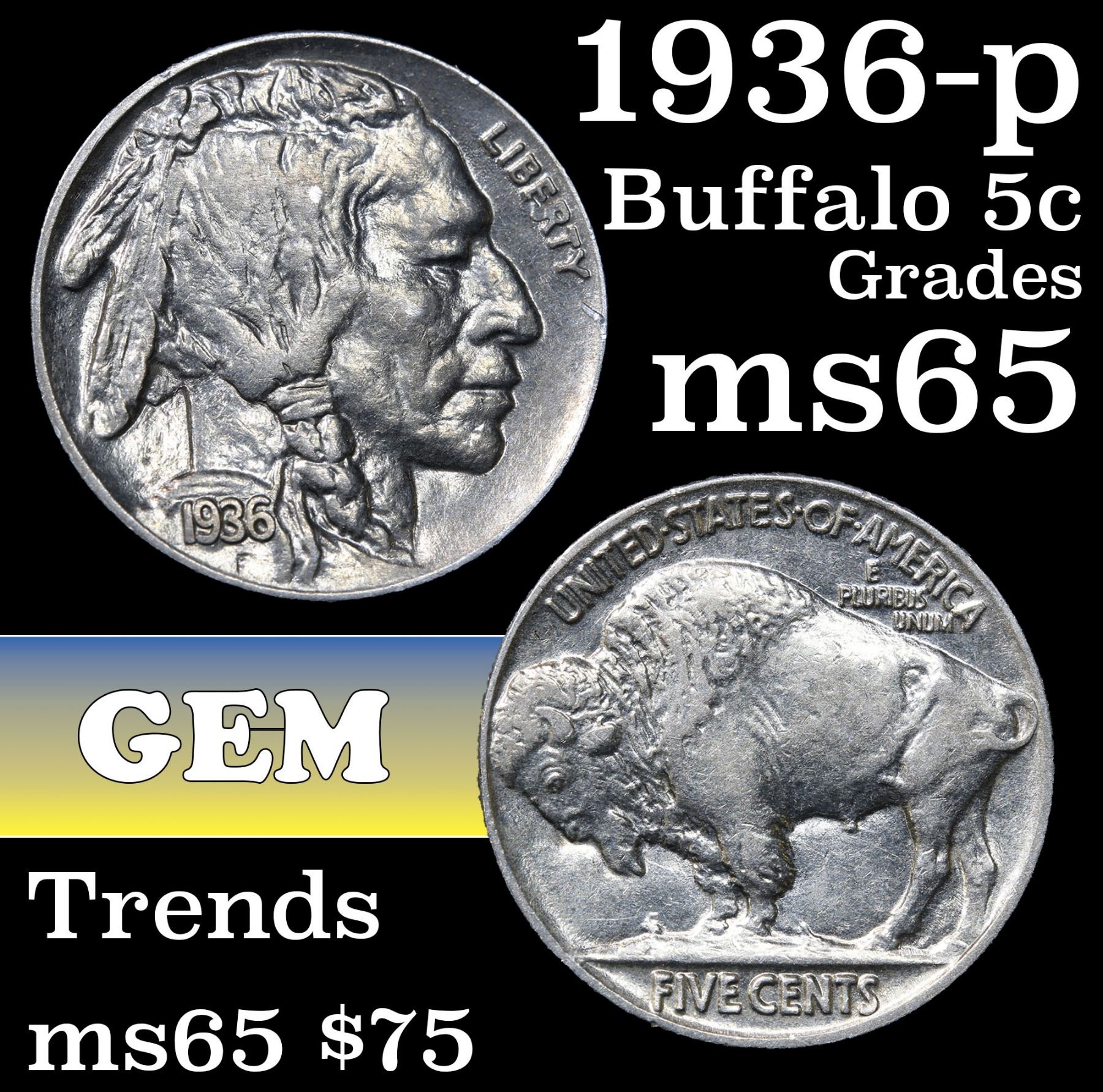 1936-p Buffalo Nickel 5c Grades GEM Unc.