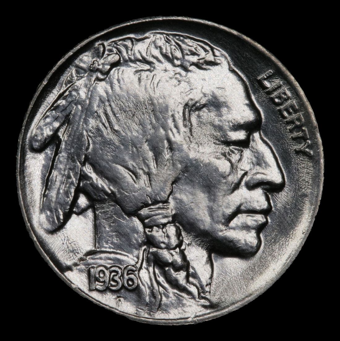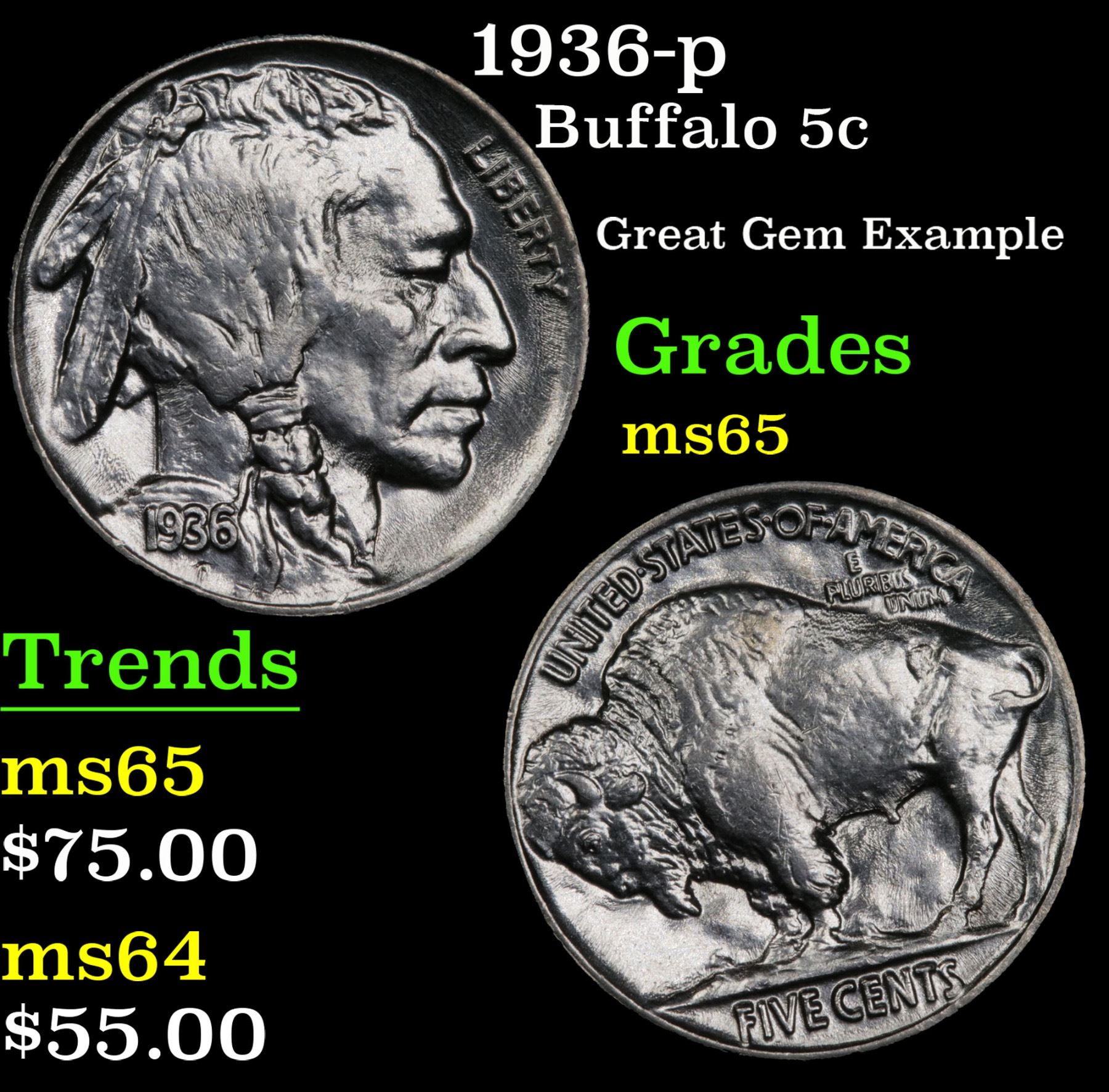 1936-p . Great Gem Example Buffalo Nickel 5c Grades GEM Unc.