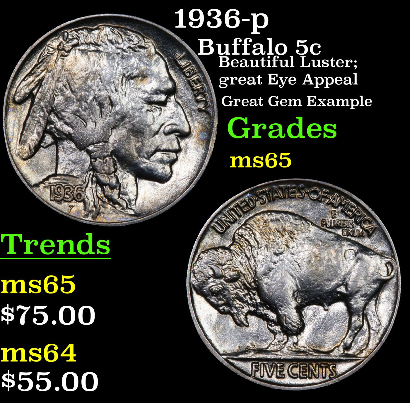 1936-p Buffalo Nickel 5c Grades GEM Unc.