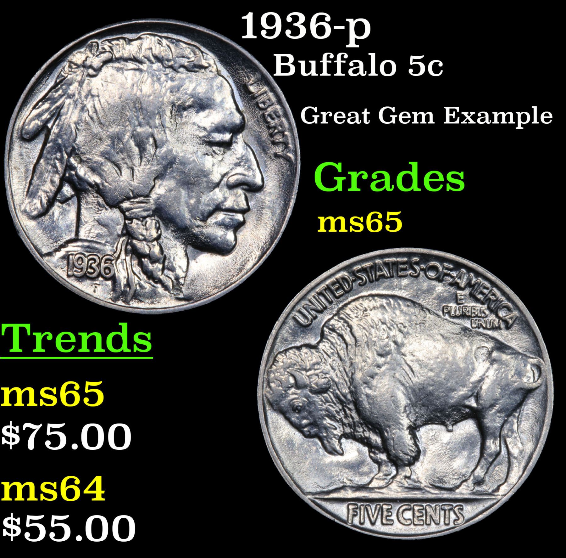 1936-p Buffalo Nickel 5c Grades GEM Unc.