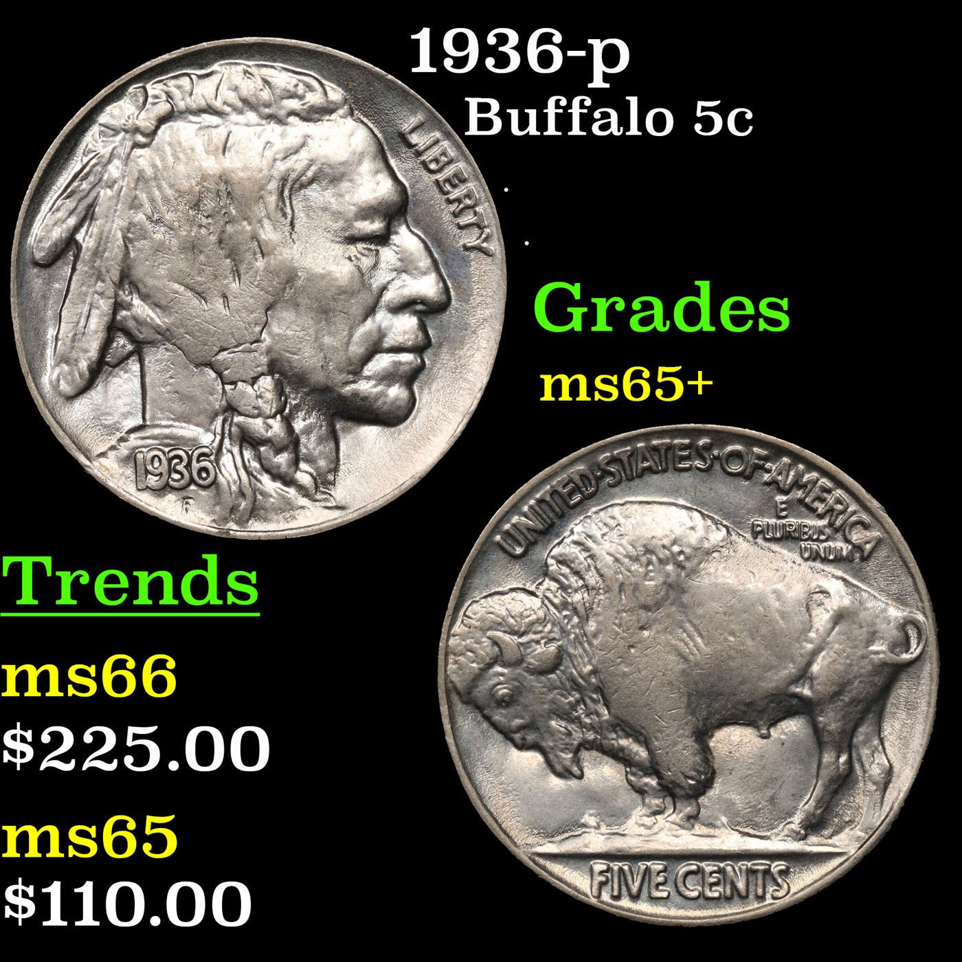 1936-p Buffalo Nickel 5c Grades GEM+ Unc.