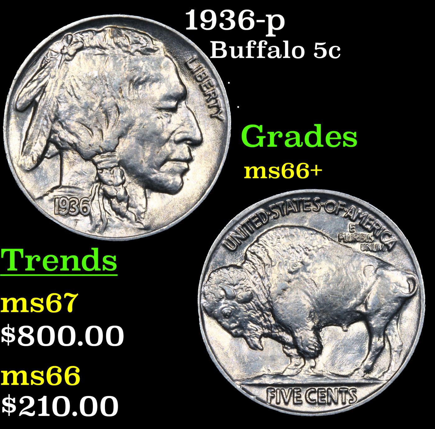 1936-p Buffalo Nickel 5c Grades GEM++ Unc.