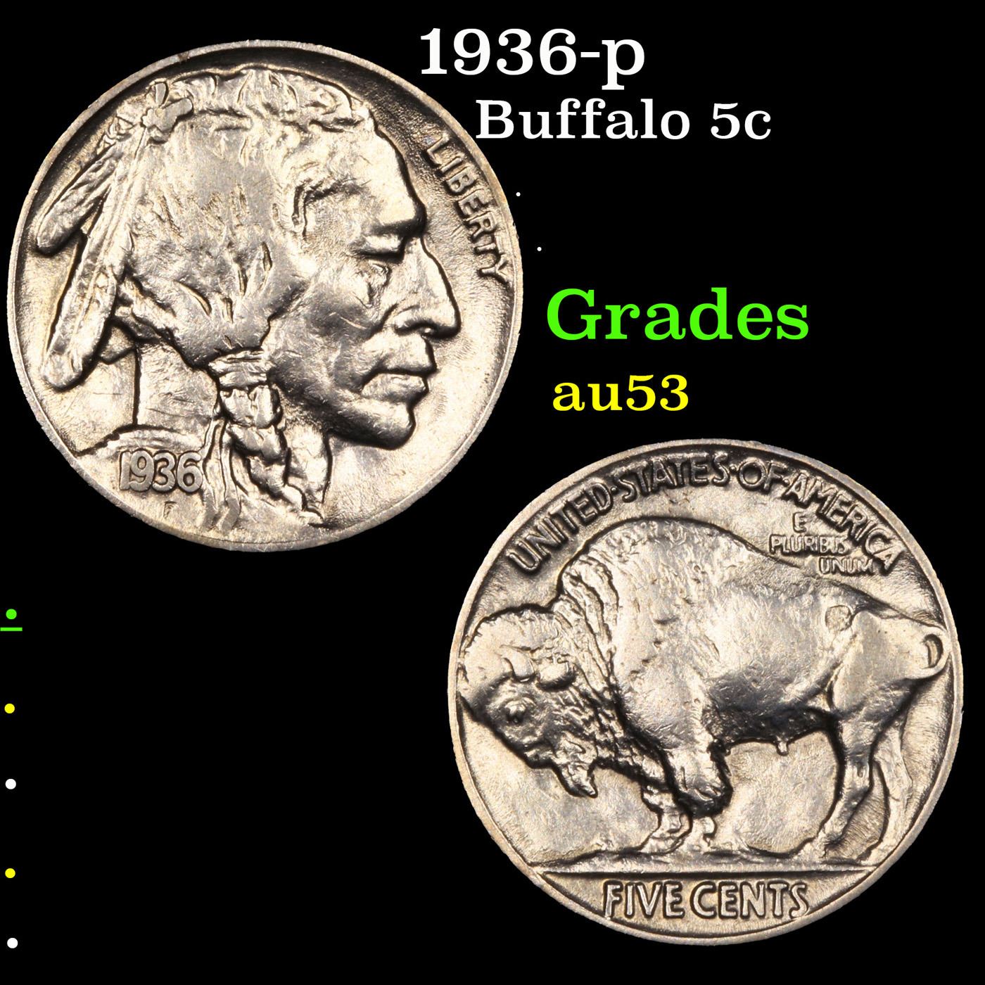 1936-p Buffalo Nickel 5c Grades Select AU.
