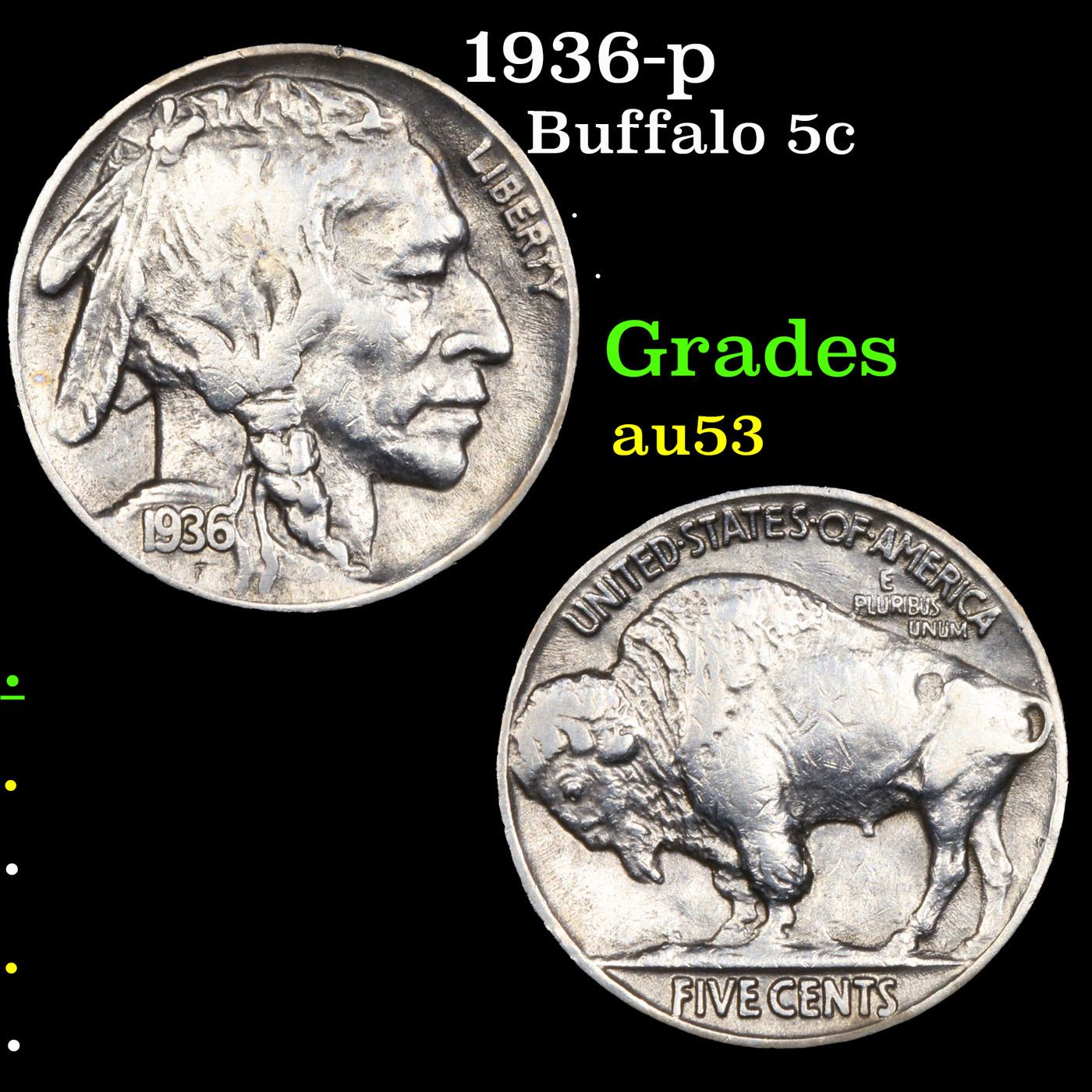 1936-p Buffalo Nickel 5c Grades Select AU.