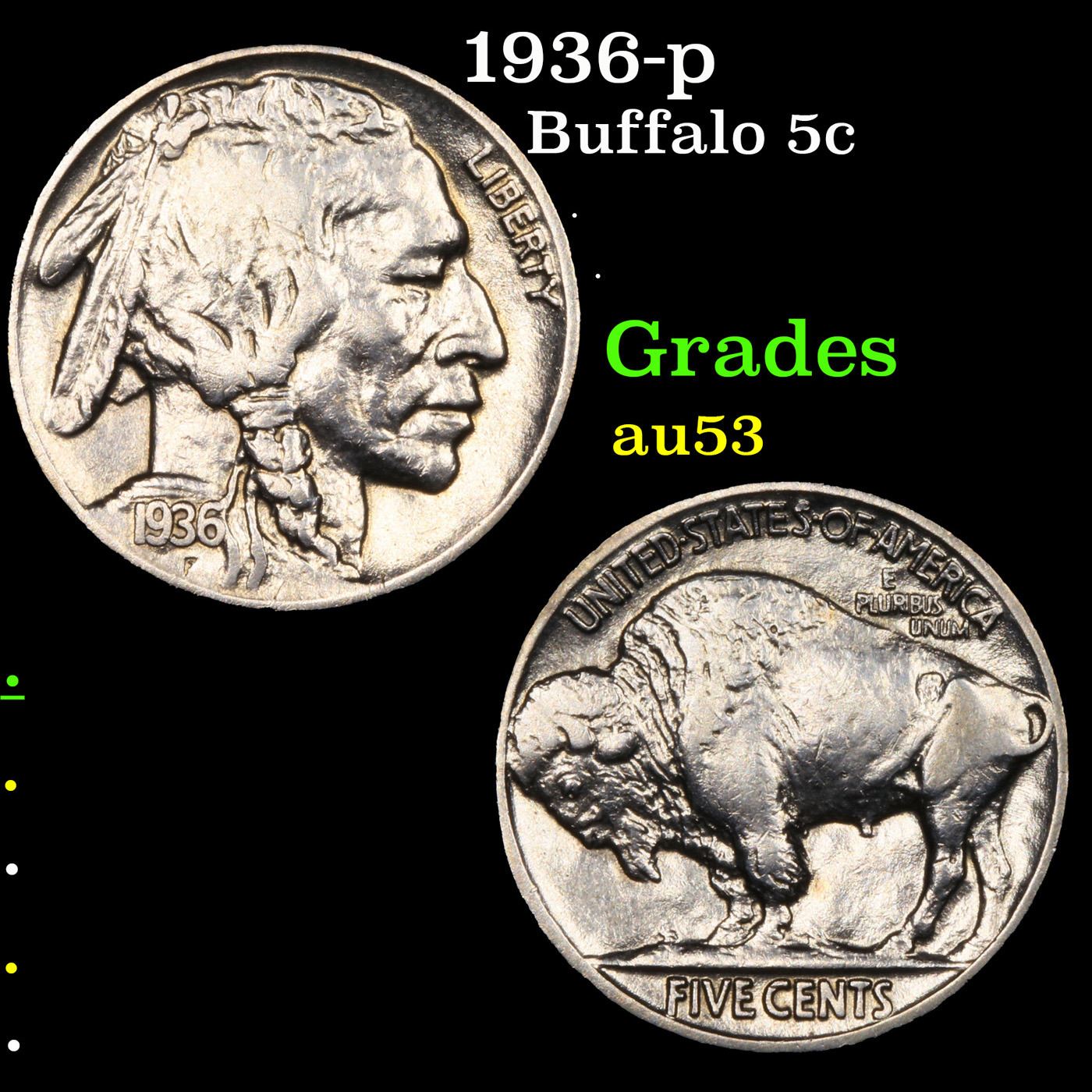 1936-p Buffalo Nickel 5c Grades Select AU.