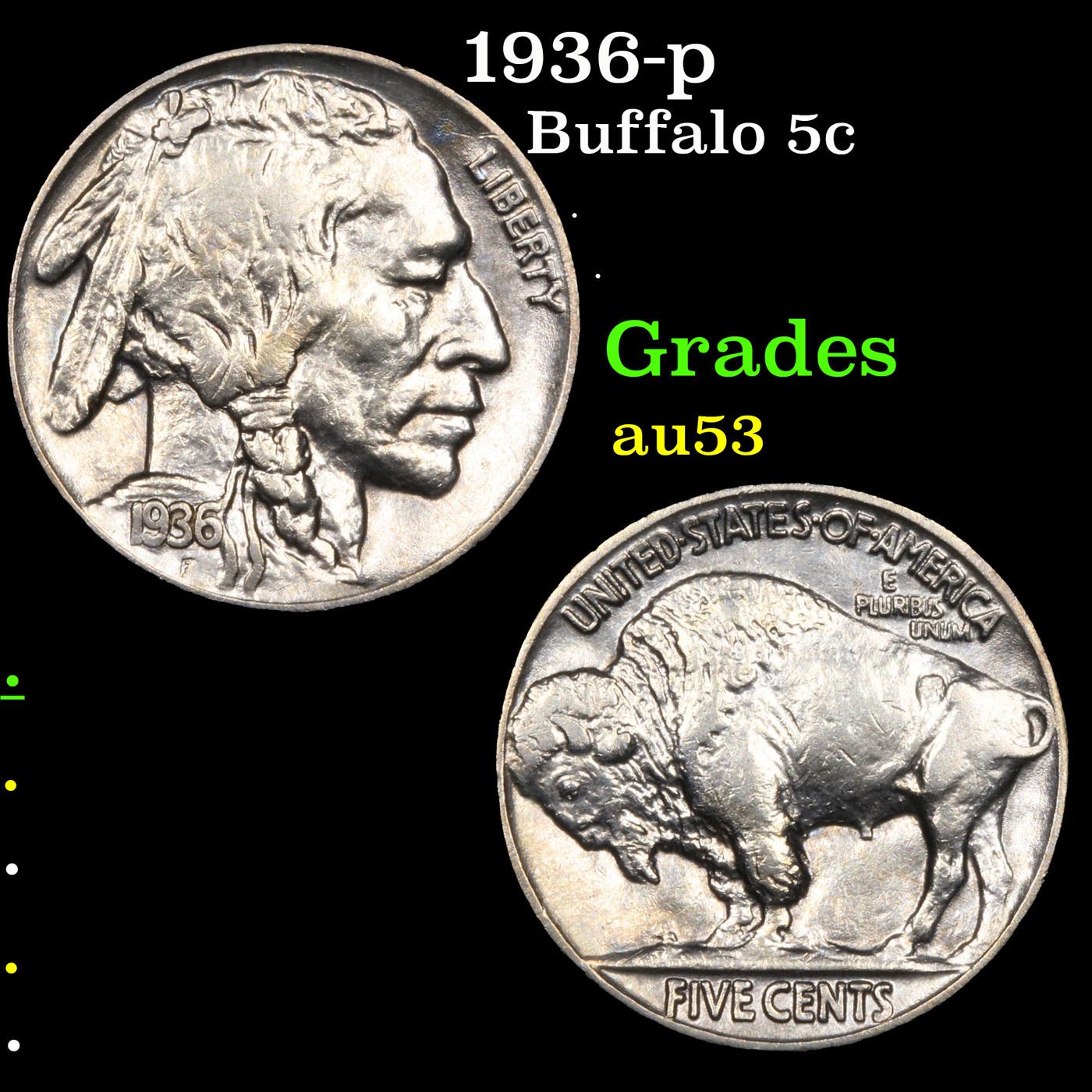 1936-p Buffalo Nickel 5c Grades Select AU.