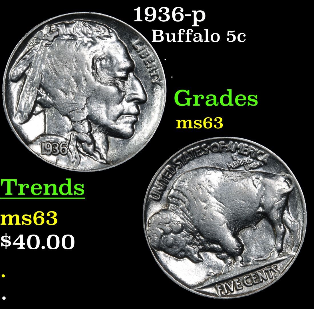 1936-p . . Buffalo Nickel 5c Grades Select Unc.