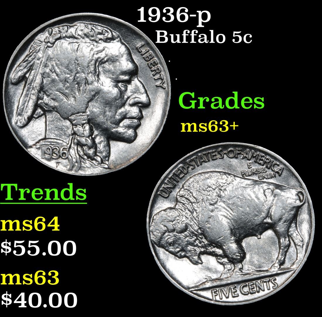 1936-p . . Buffalo Nickel 5c Grades Select+ Unc.