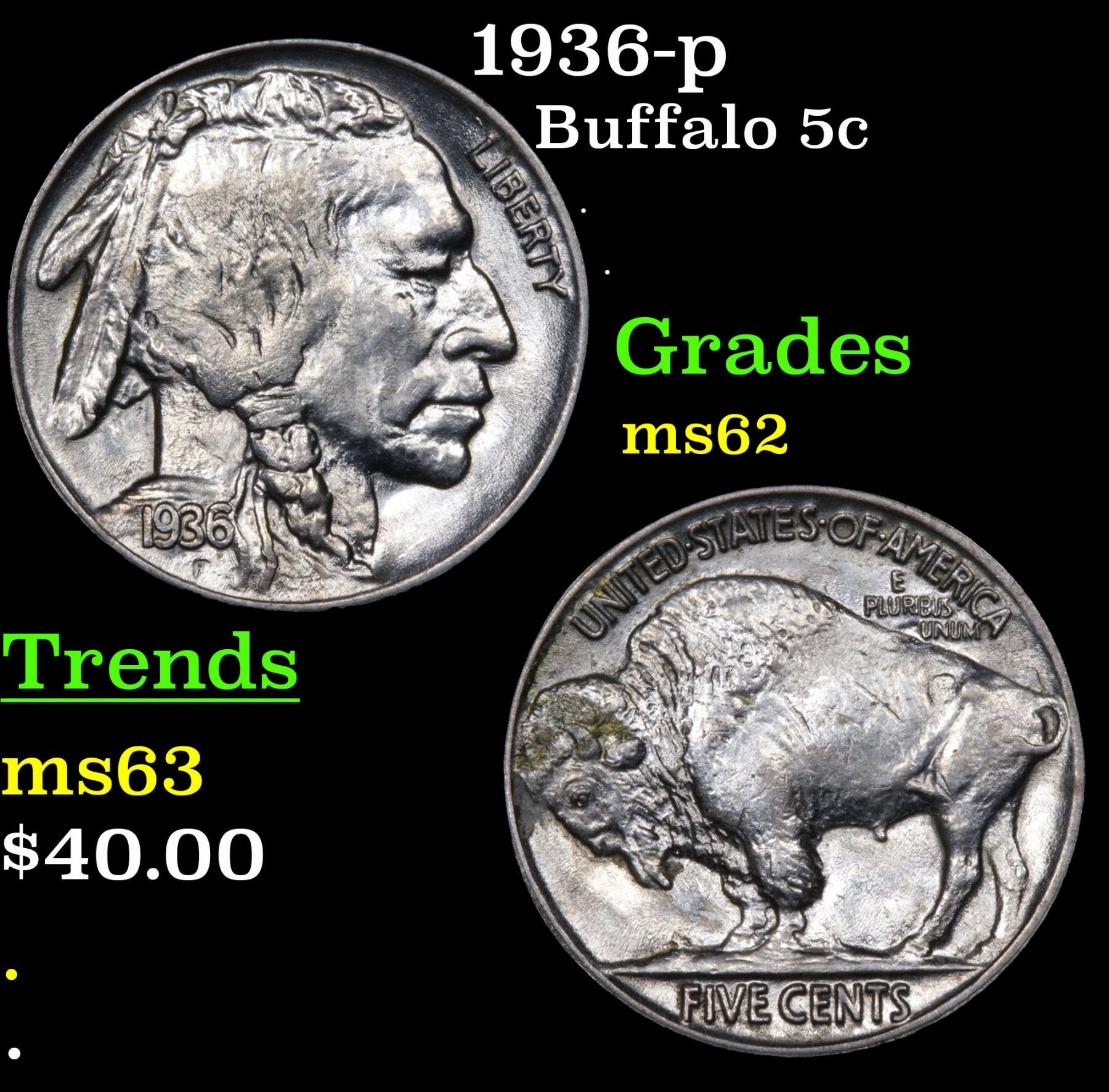 1936-p Buffalo Nickel 5c Grades Select Unc.
