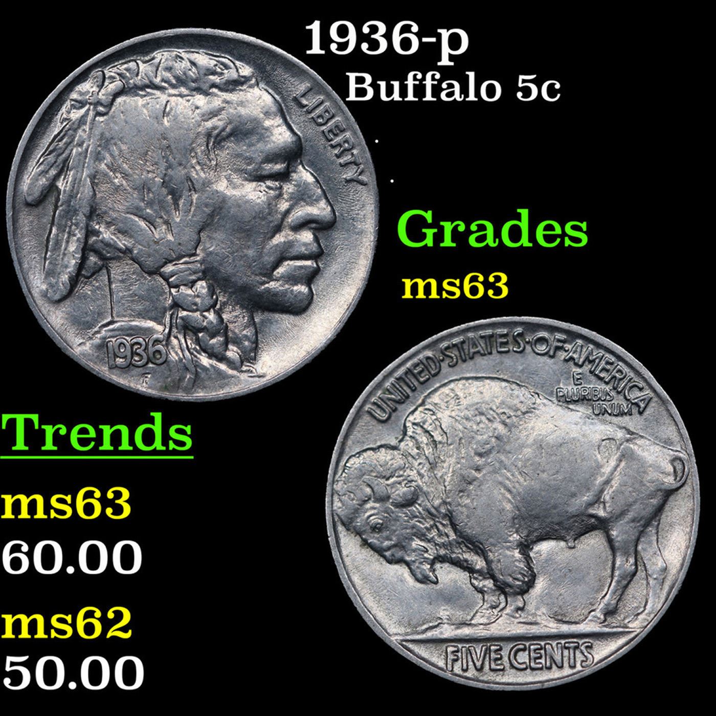 1936-p Buffalo Nickel 5c Grades Select Unc.